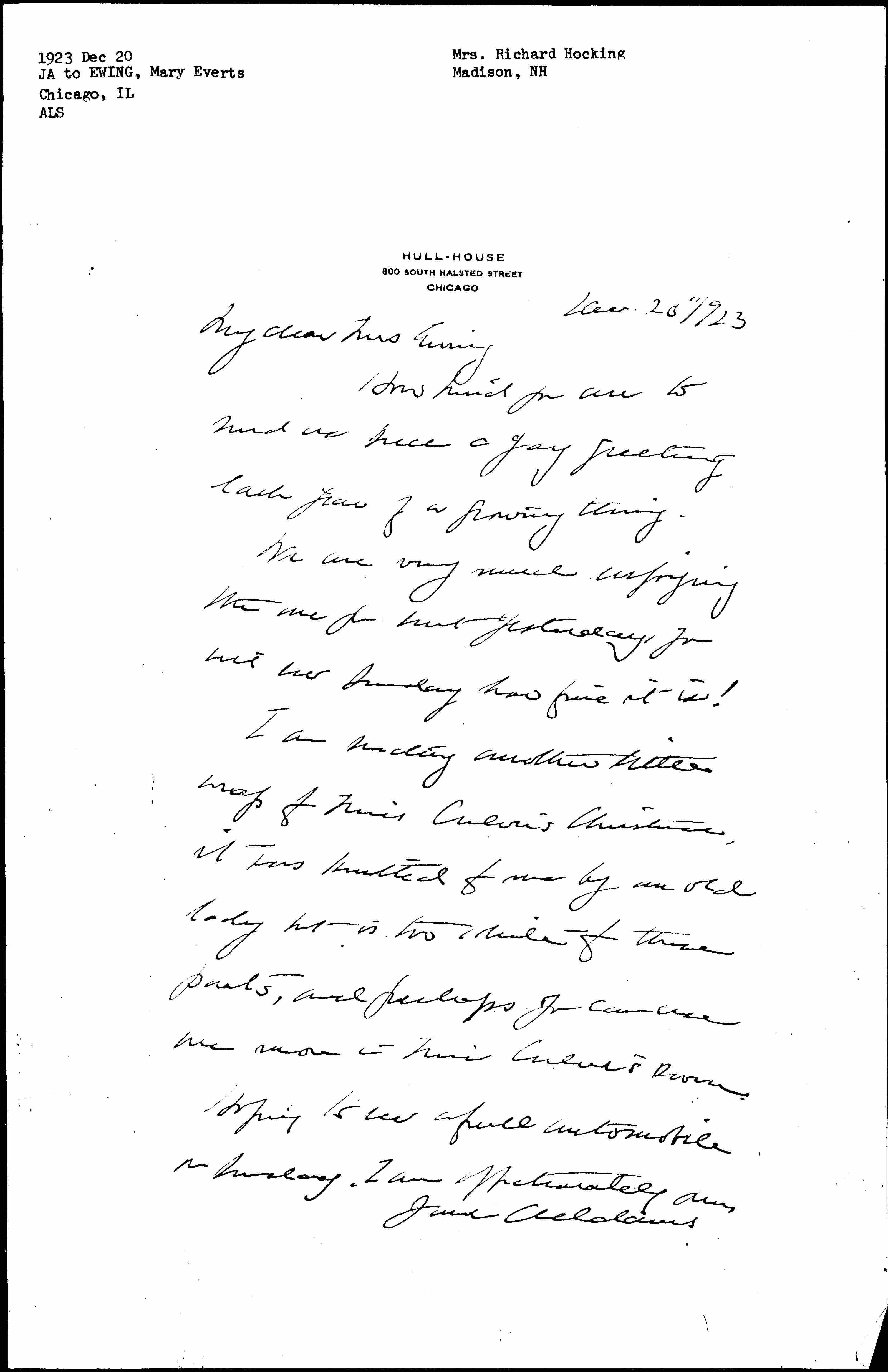 I am sending another little wrap for Miss Culver's Christmas, it was knitted for me by an old lady but is too white for these parts, and perhaps you can use one more in Miss Culver's room.