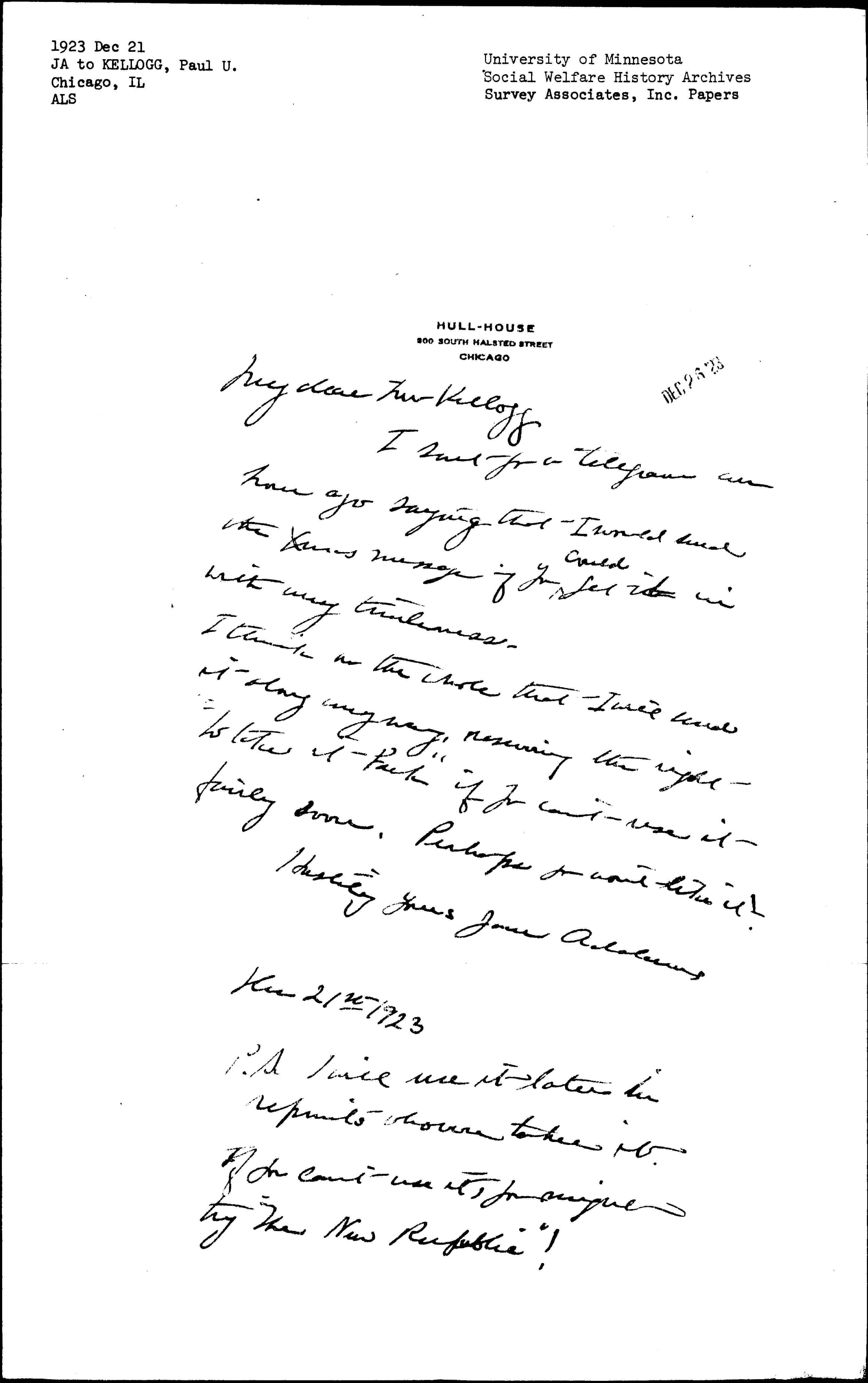 P.S. I will use it later in reprints whoever takes it. If you can't use it, you might try "The New Republic?"