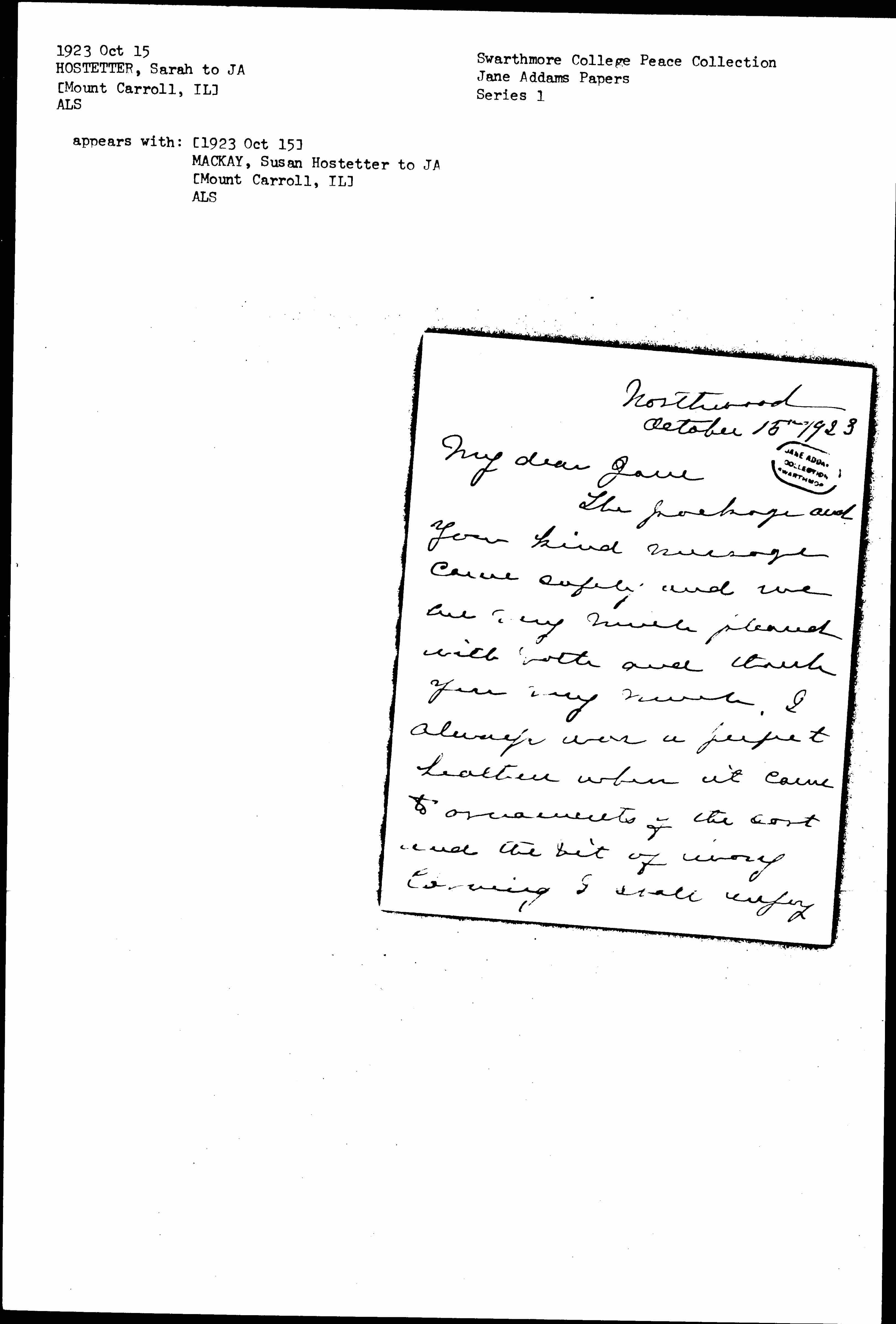 The package and your kind message came safely and we are very much pleased with both and thank you very much. I always was a perfect heathen when it came to ornaments of the sort and the bit of ivory carving I shall enjoy [page 2] very often. It was indeed especially fine to hear from you again.