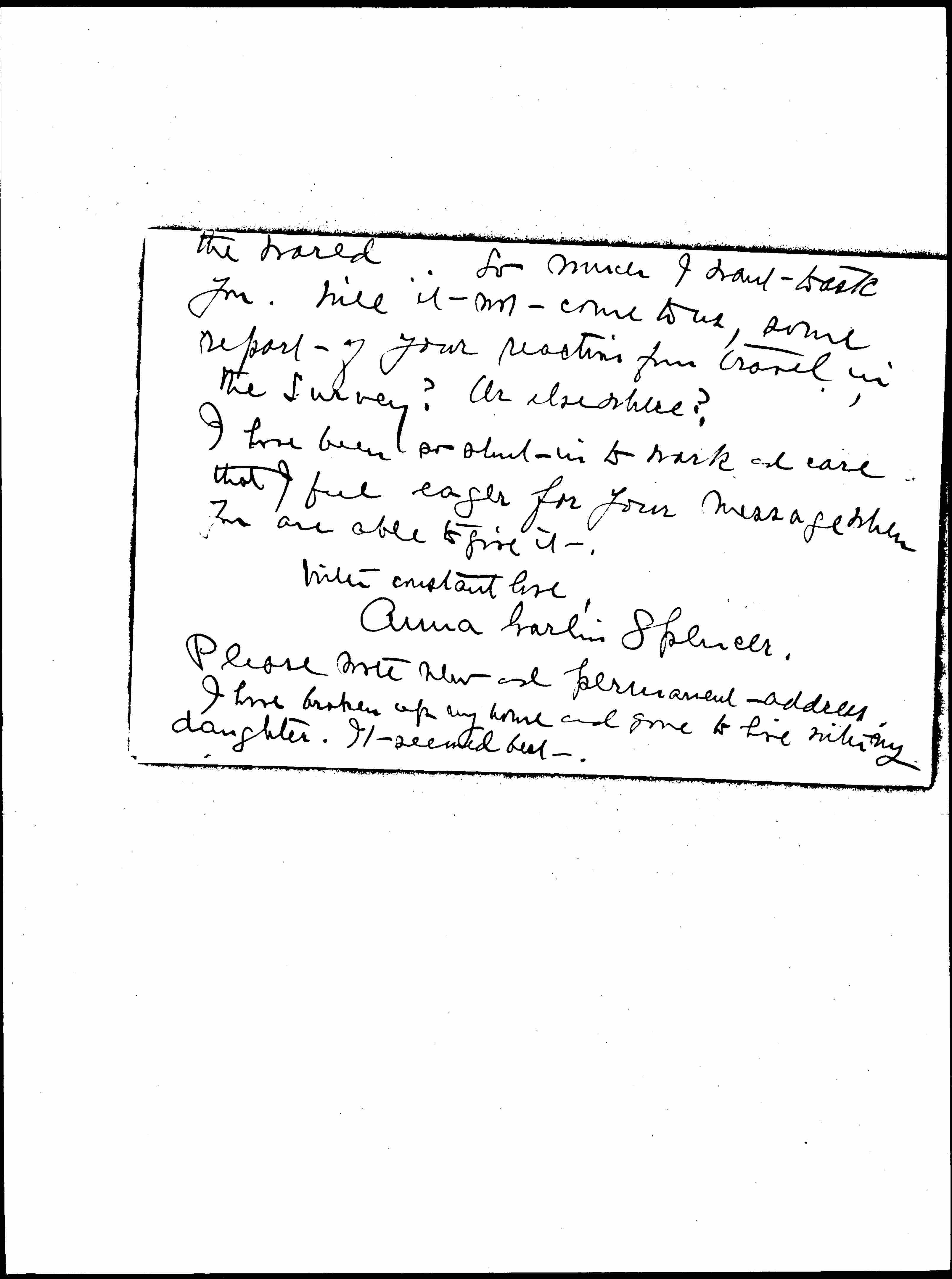 Please note new and permanent address. I have broken up my house and gone to live with my daughter. It seemed best.