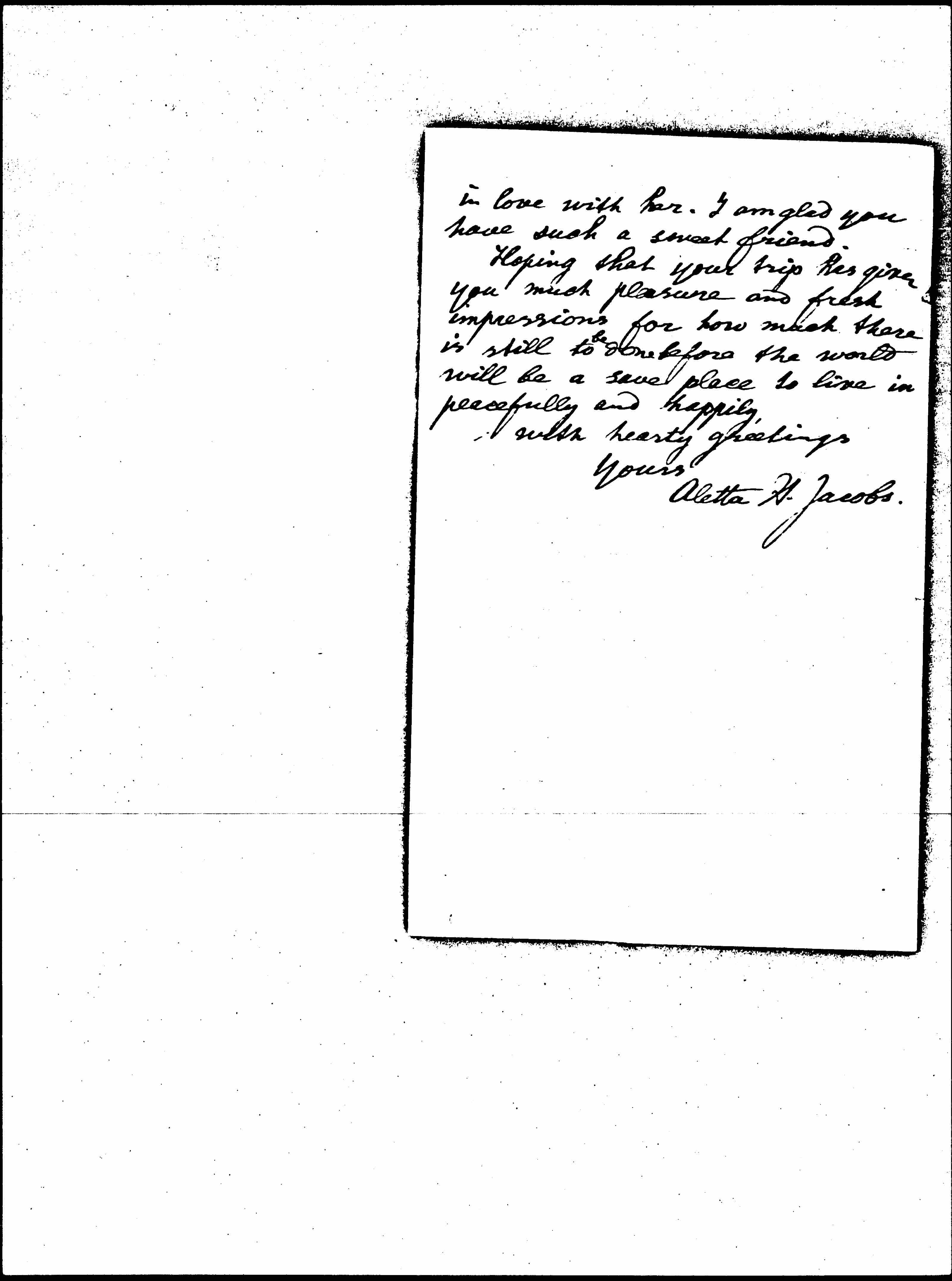 Will you give my love to Miss Smith? I always have admired her and if I would have been a man I should have fallen [page 3] in love with her. I am glad you have such a sweet friend.