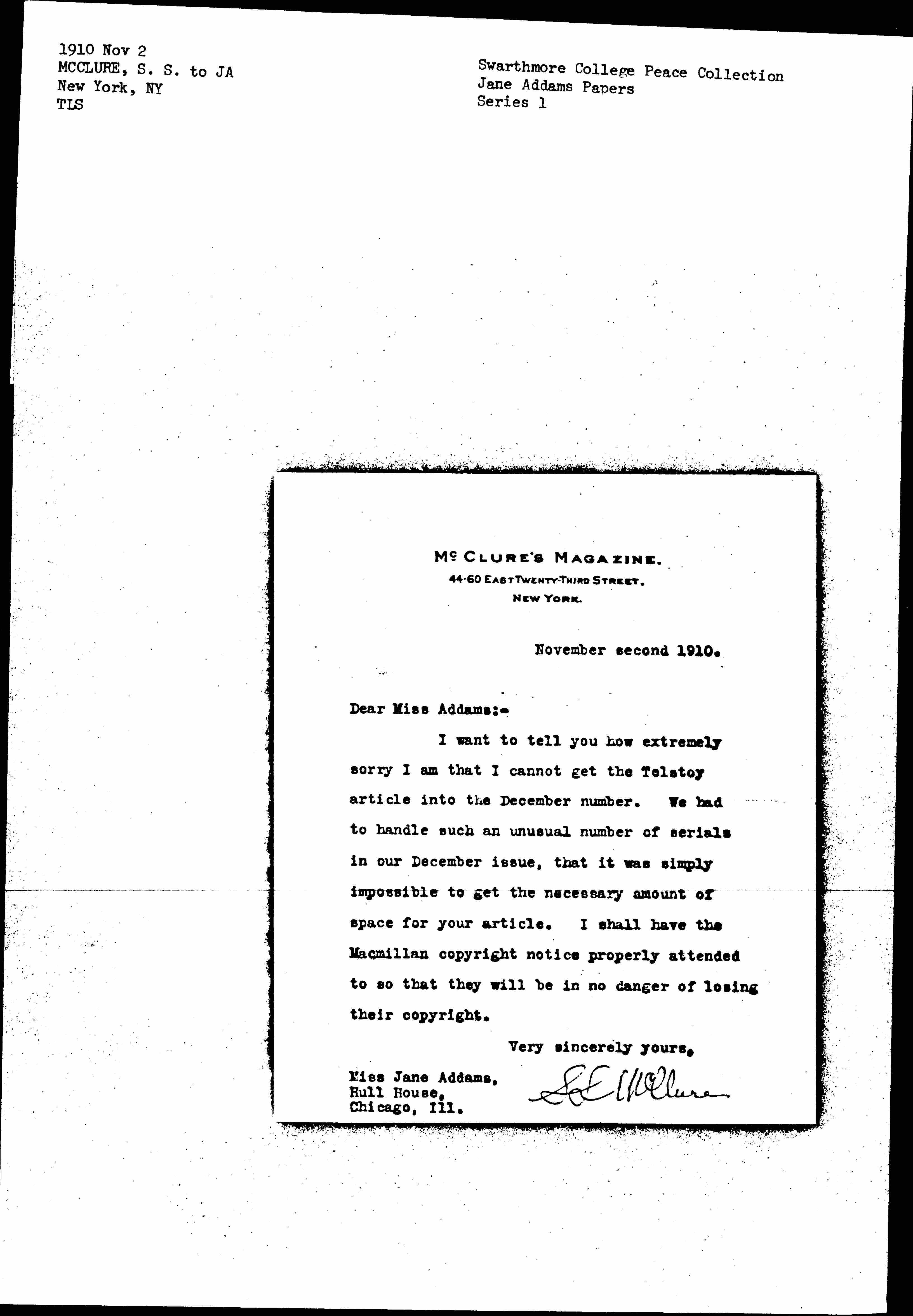 S S McClure [signed]