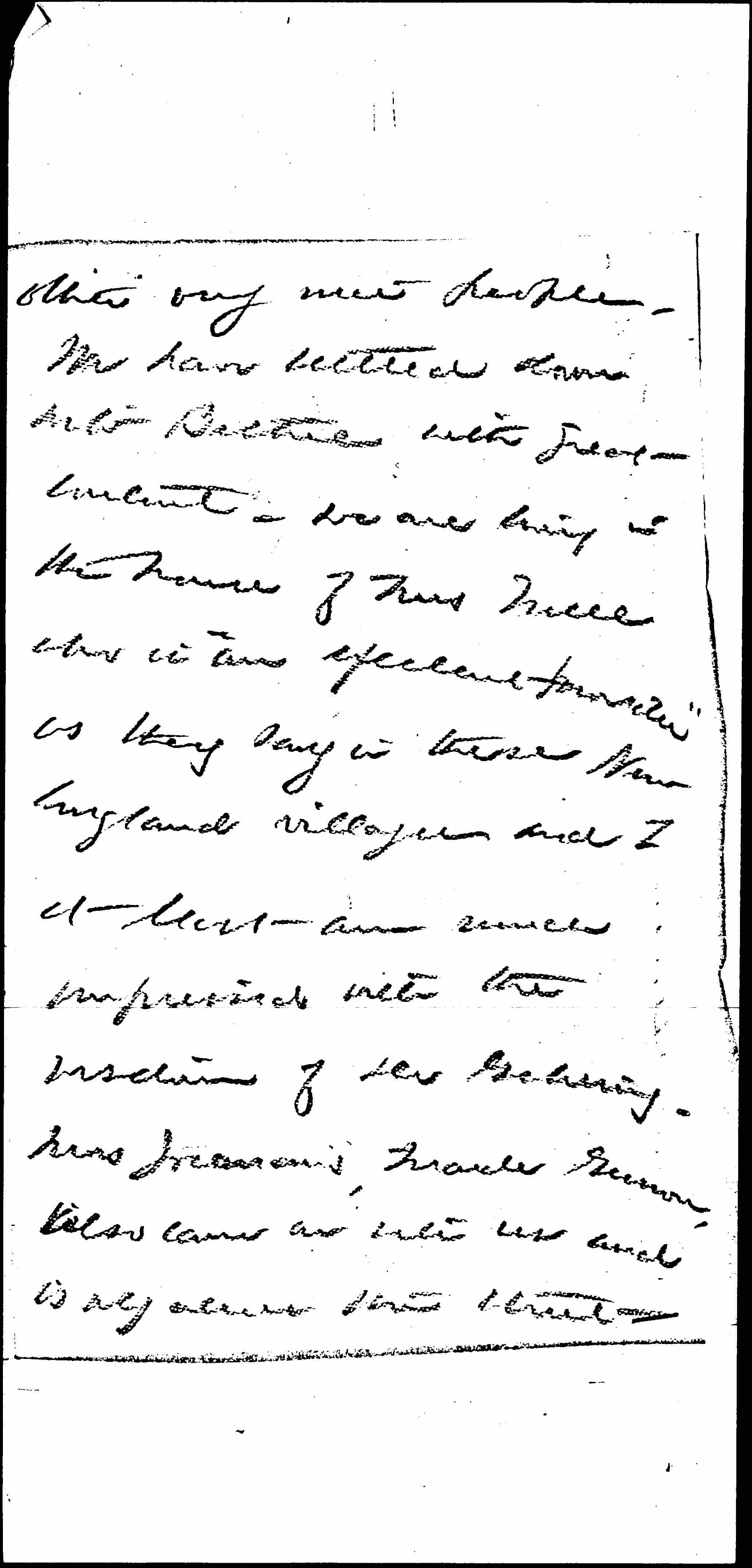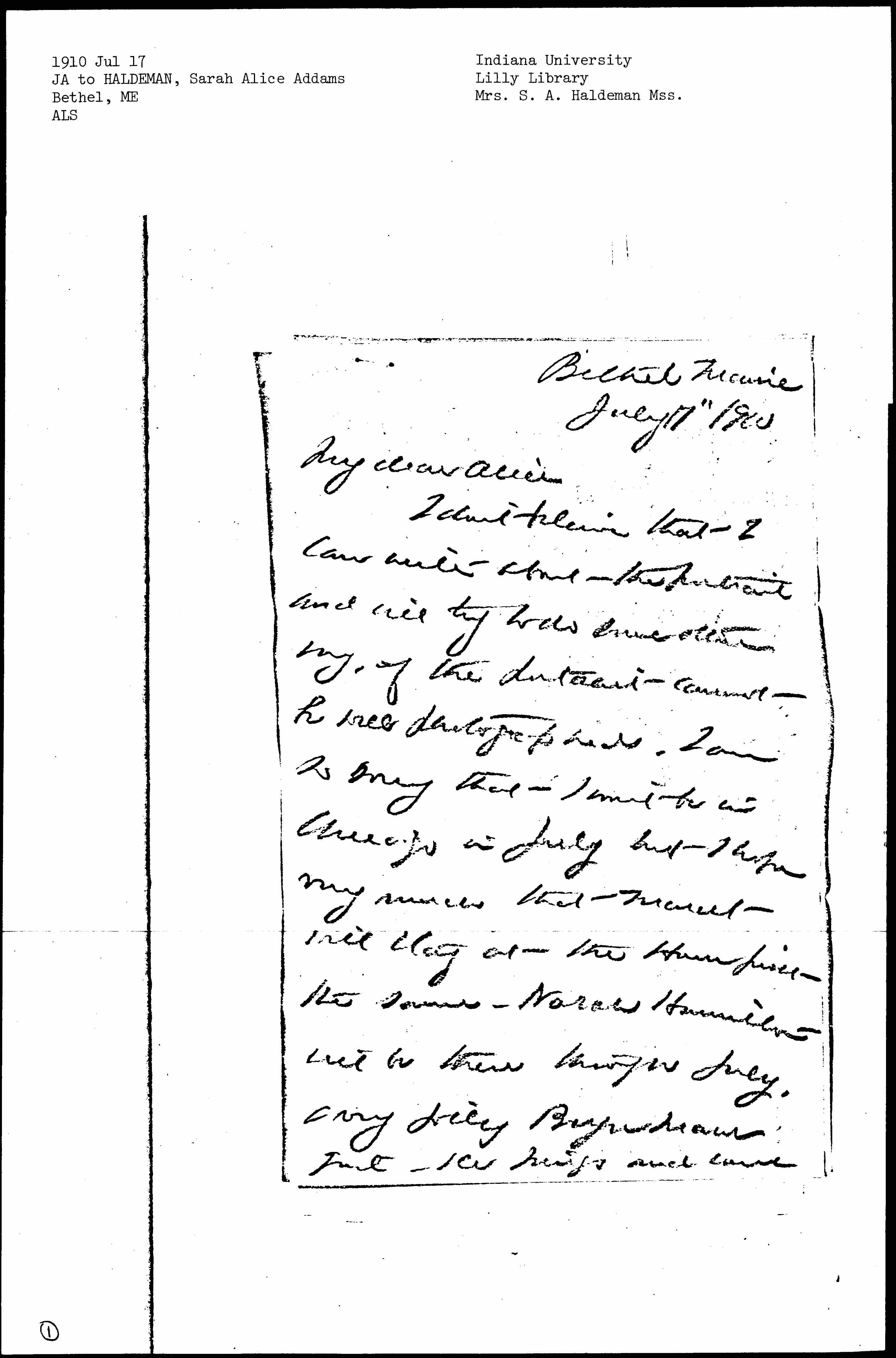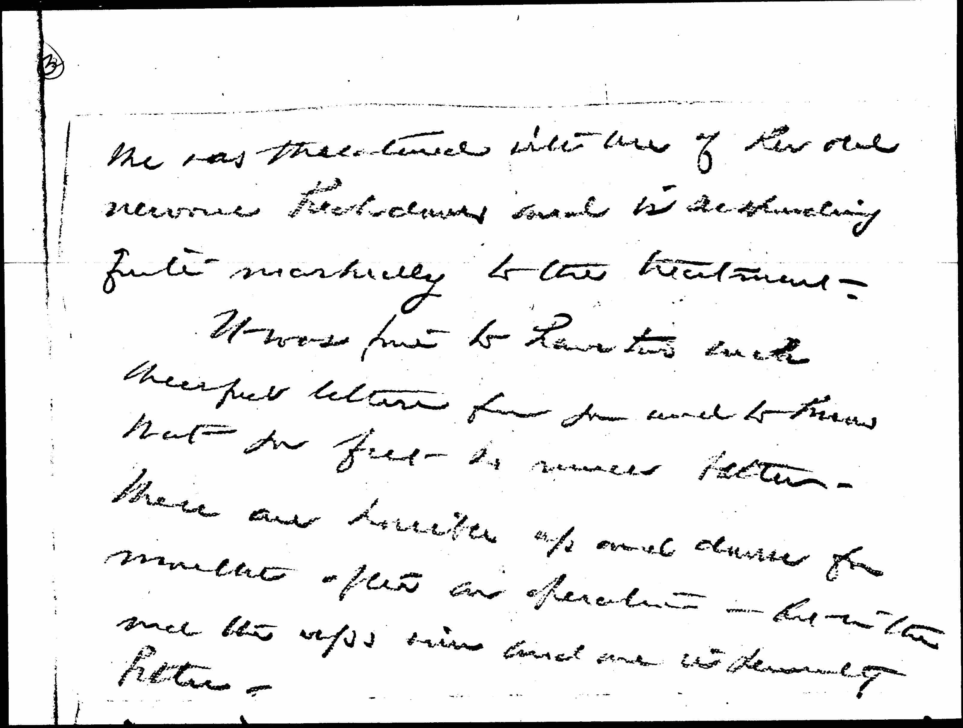 We have settled down into Bethel with great content. We are living in the house of Mrs [Mills] who is "an excellent [illegible]" as they say in these New England villages and I at least am much impressed with the wisdom of Dr Gehring. Mrs [Yeomans], Maude Gernon, also came on with us and is only across this street. [page 3] She was threatened with one of her old nervous breakdowns and is responding quite markedly to the treatment.