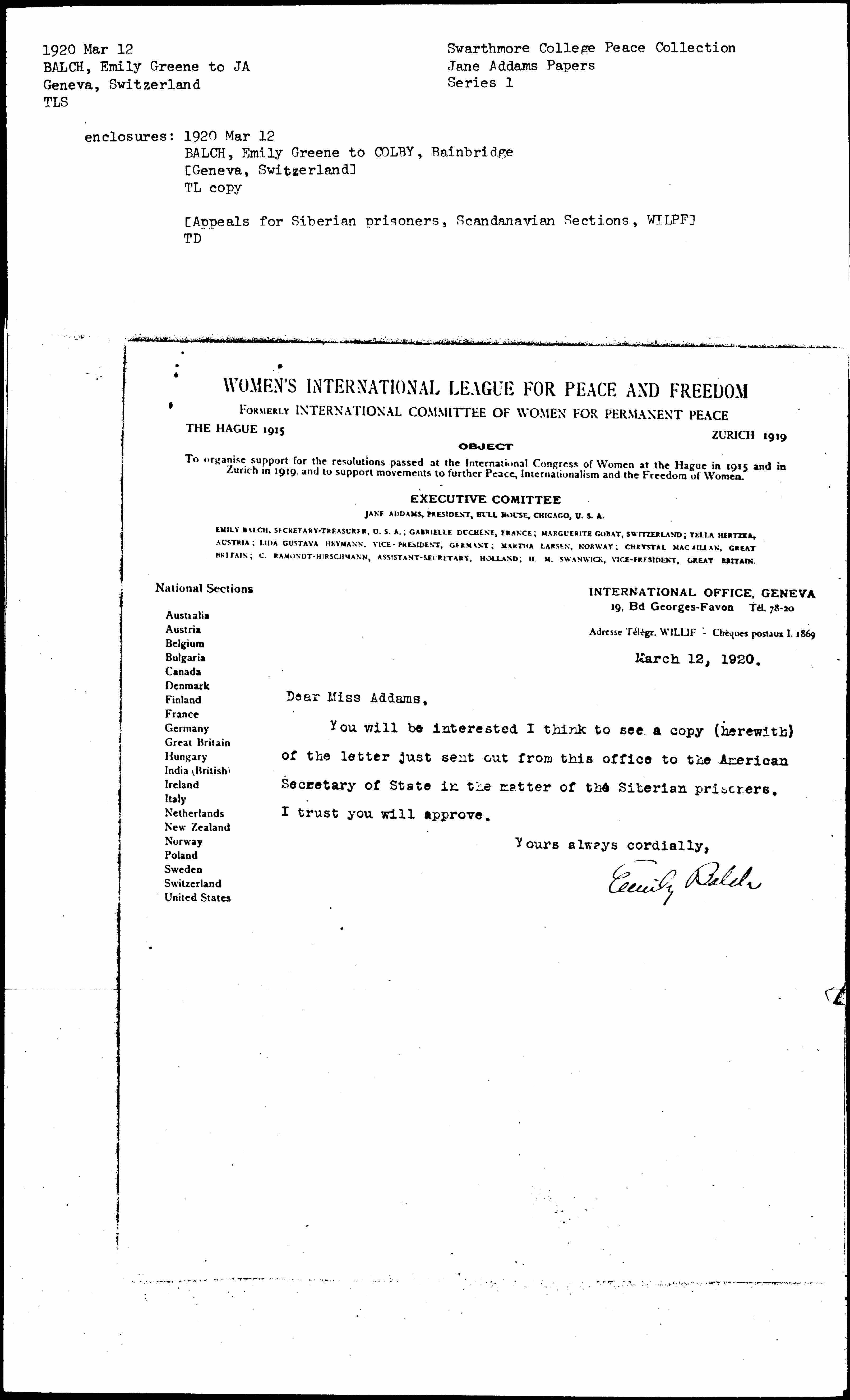 You will be interested I think to see a copy (herewith) of the letter just sent out from this office to the American Secretary of State in the matter of the Siberian prisoners. I trust you will approve.