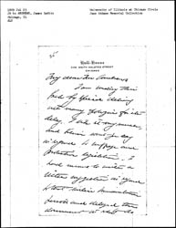 I am sending this back by special delivery with many apologies for the delay. I like it very much, and believe what you say in regard to suffrage and protective legislation. I had meant to write a little suggestion in regard to that earlier humanitarian period and delayed the document in order to do [page 2] that, but it is perhaps just as well that I haven't time.