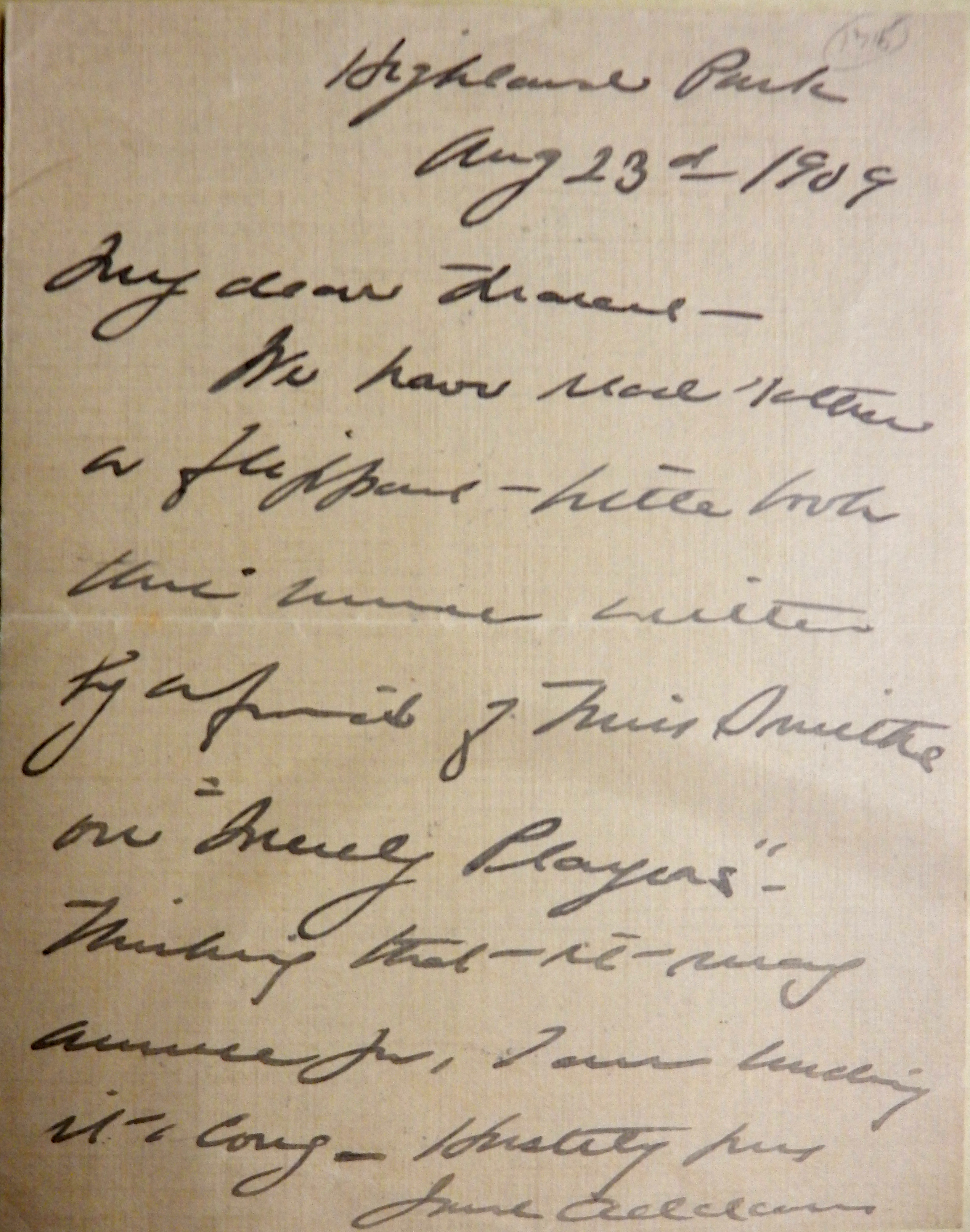 We have read rather a flippant little book this summer written by a friend of Miss Smith's on "Merely Players." Thinking that is may amuse you, I am sending it along-- Hastily yours