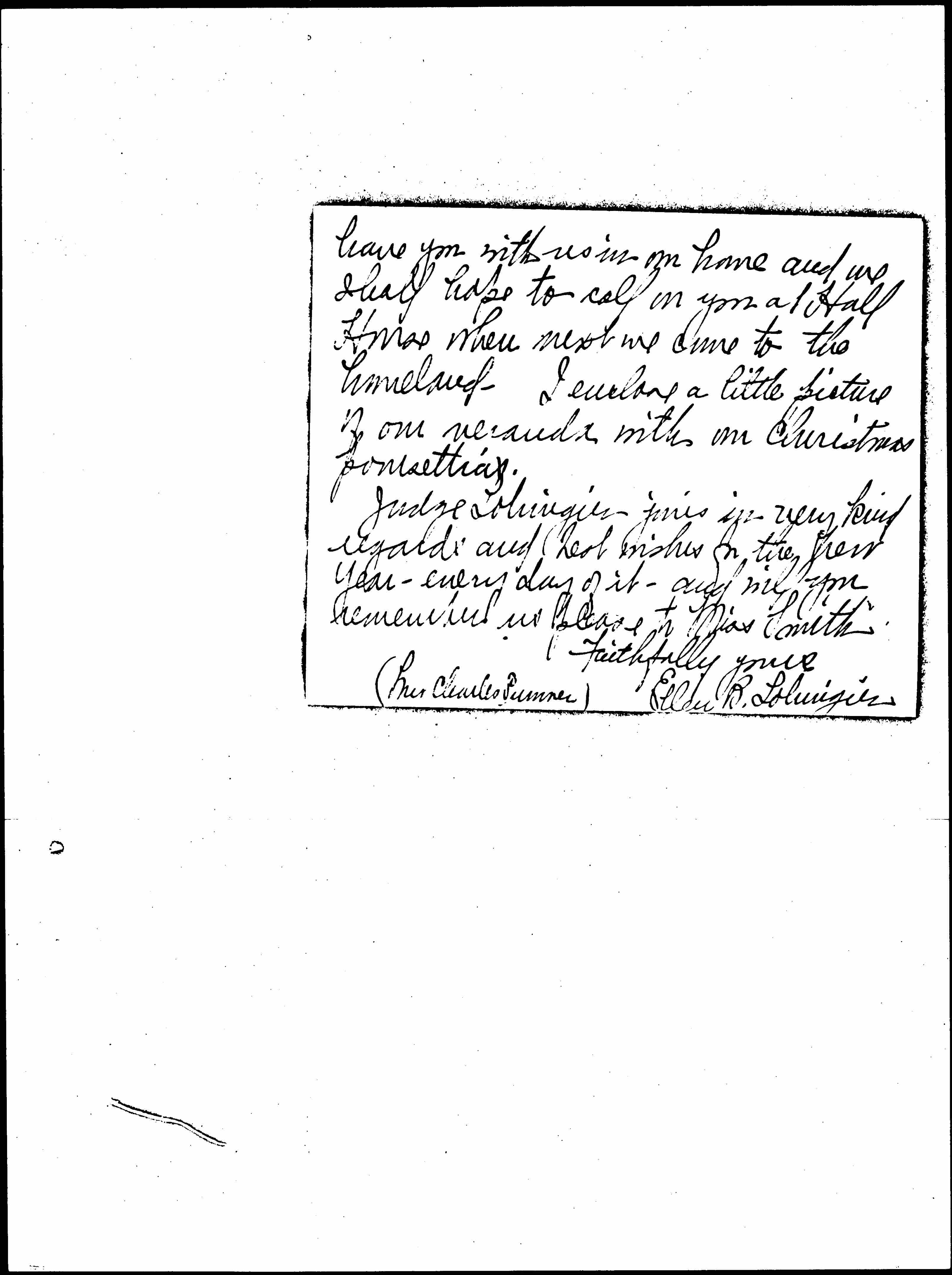 Judge Lobingier joins in very kind regards and best wishes for the new year -- every day of it -- and will you remember us please to Miss Smith.
