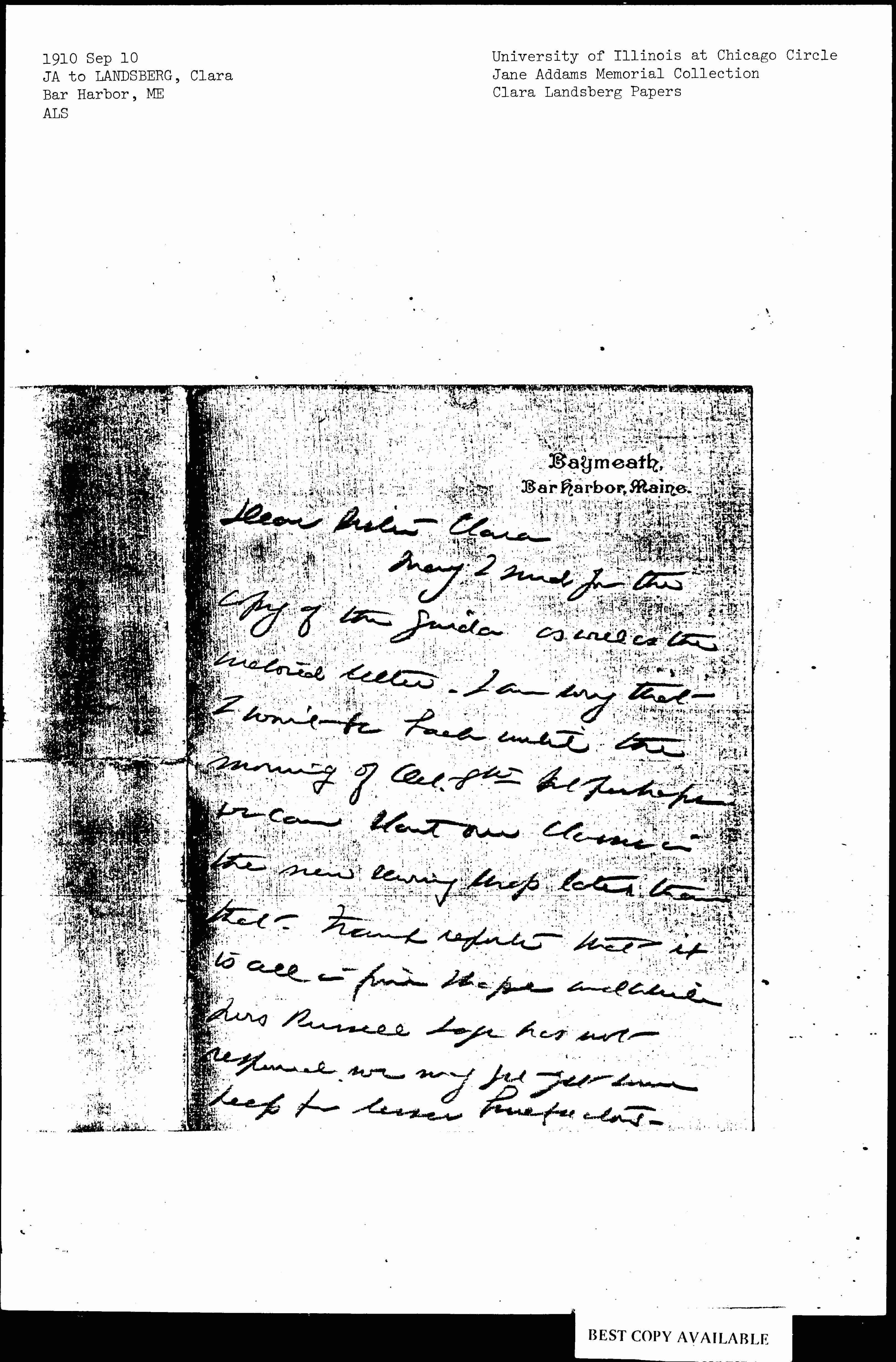 The last of the manuscript will get off on Monday or Tuesday and then the proof will begin to come in. Weber Linn who came up for my fiftieth birthday, thought that it was quite far from [switched?]. I have never written so slowly on anything but it is improved over last year. Do write me a word when you get back to H. H. as to its aspect. I suspect I am going to get pretty homesick as Sept moves on in spite of this wonderfully ↑beautiful↓ place. Mary seems well content with [page 3] Bethel and is certainly improving.