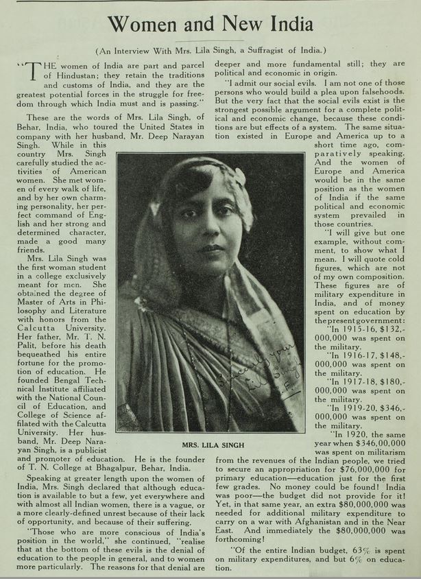 (An Interview With Mrs. Lila Singh, a Suffragist of India.)