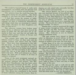 "THE women of India are part and parcel of Hindustan; they retain the traditions and customs of India, and they are the greatest potential forces in the struggle for freedom through which India must and is passing."