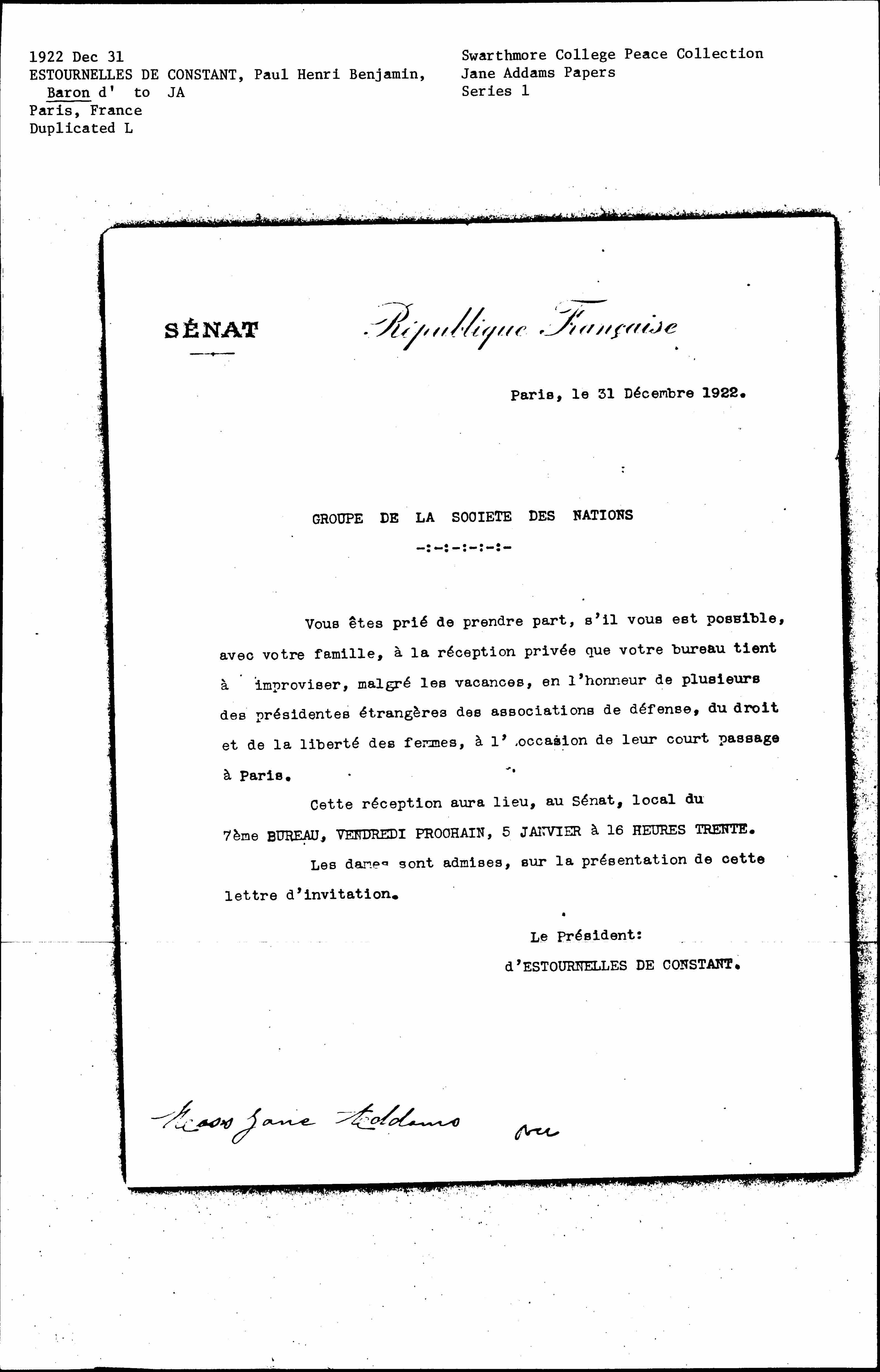 Paris, December 31, 1922.