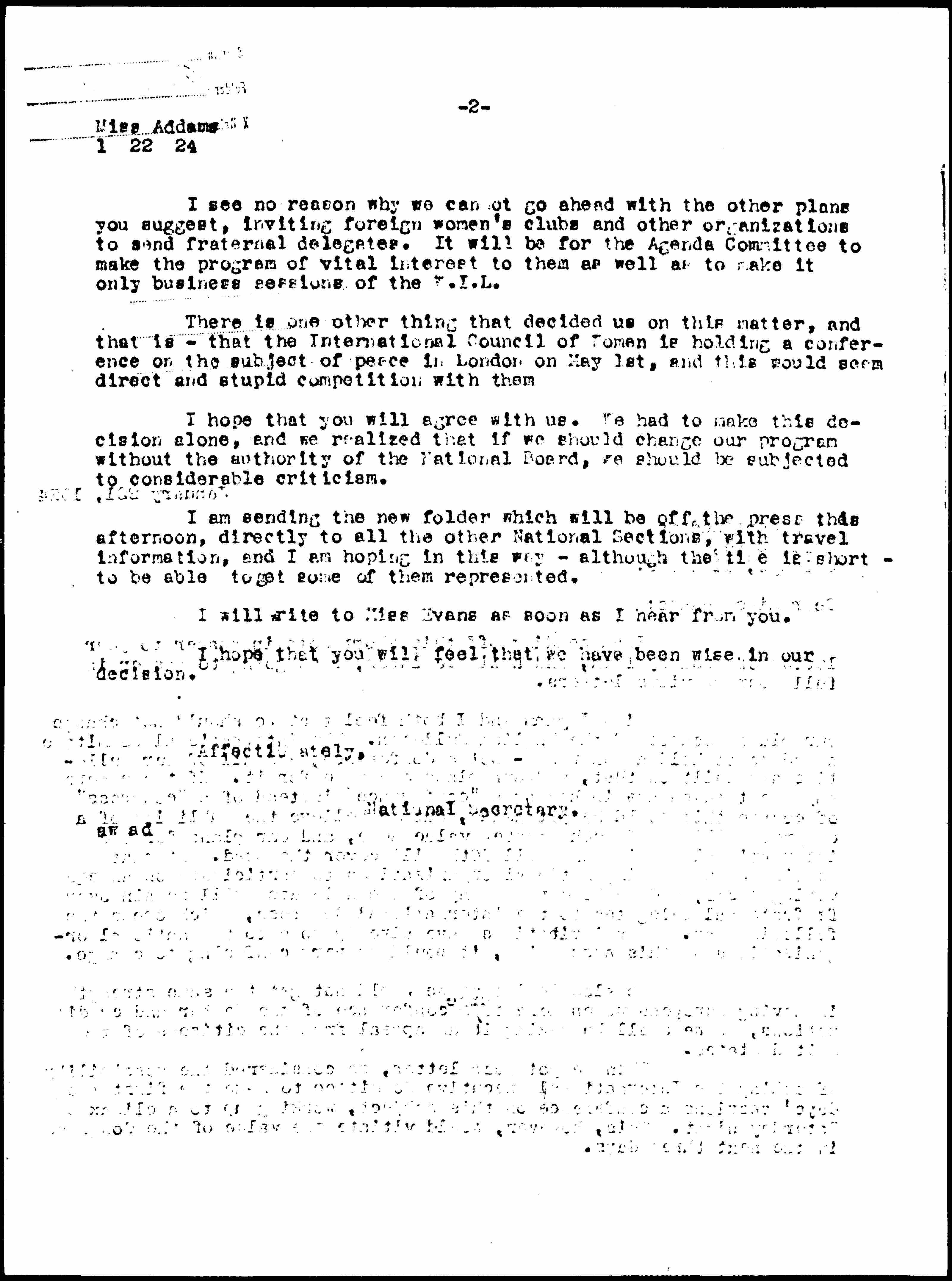 There is one other thing that decided us on this matter, and that is -- that the International Council of Women is holding a conference on the subject of peace in London on May 1st, and this would seem direct and stupid competition with them.