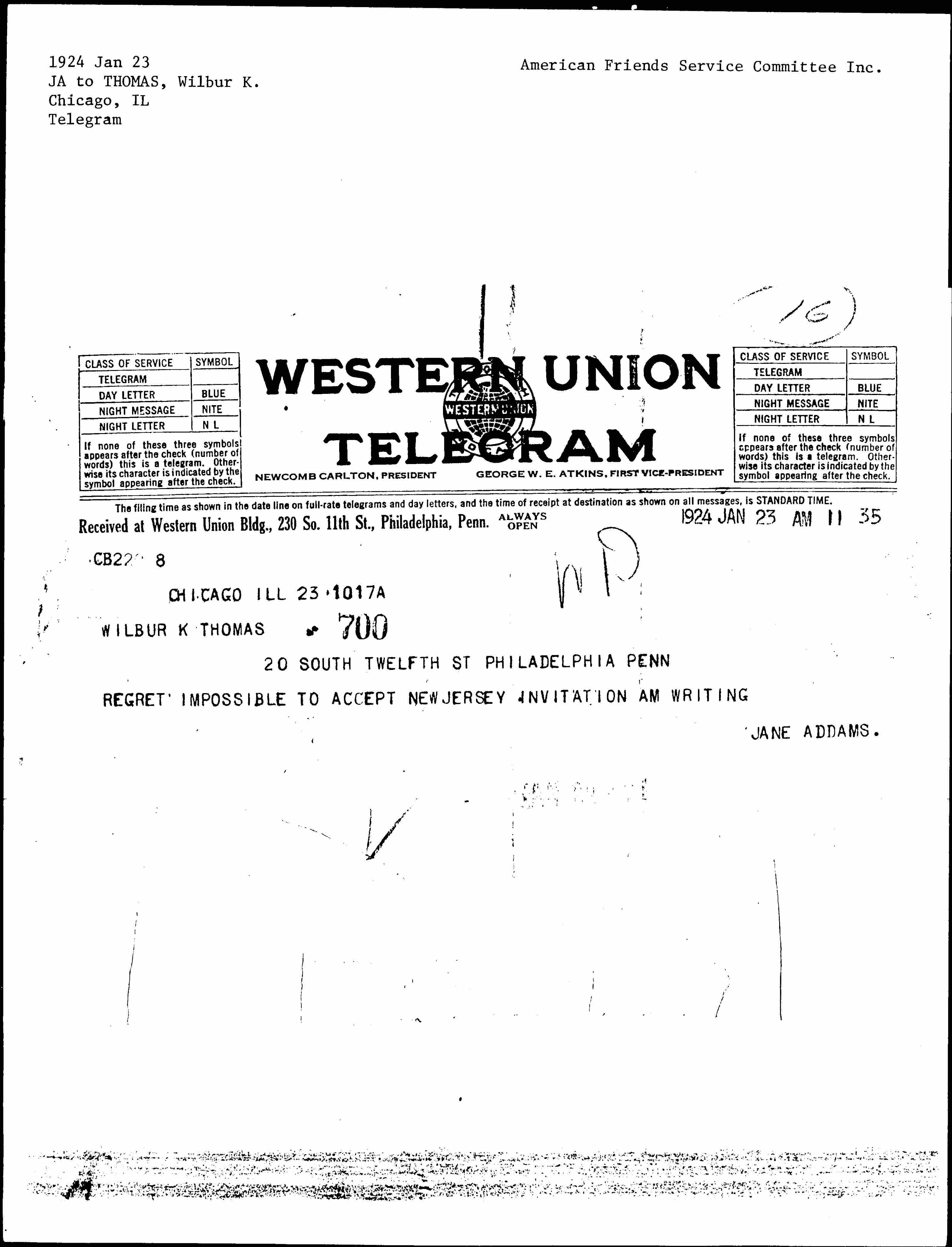REGRET IMPOSSIBLE TO ACCEPT NEW JERSEY INVITATION AM WRITING