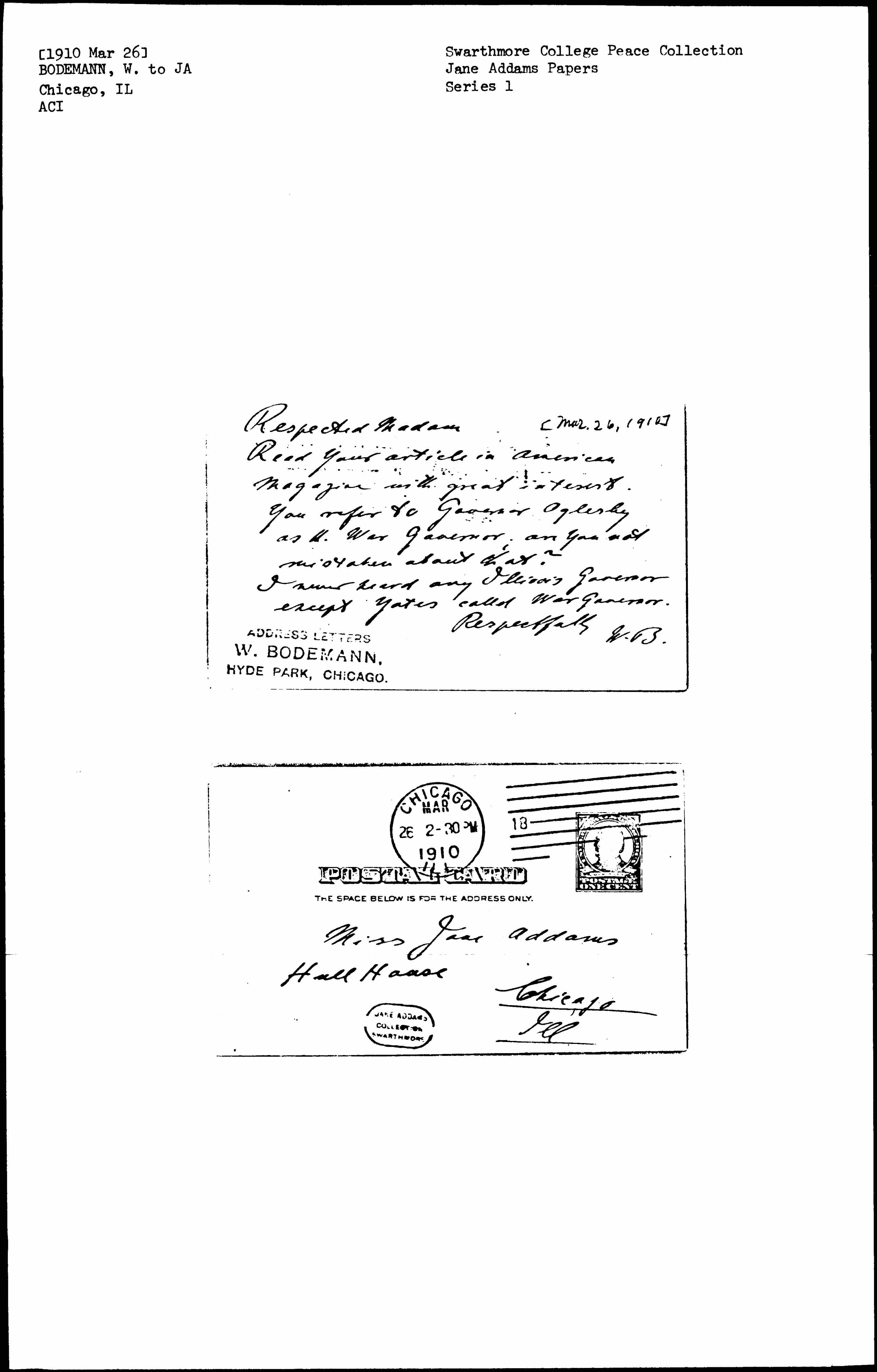 Read your article in American Magazine with great interest. You refer to Governor Oglesby as the War Governor; are you not mistaken about that?