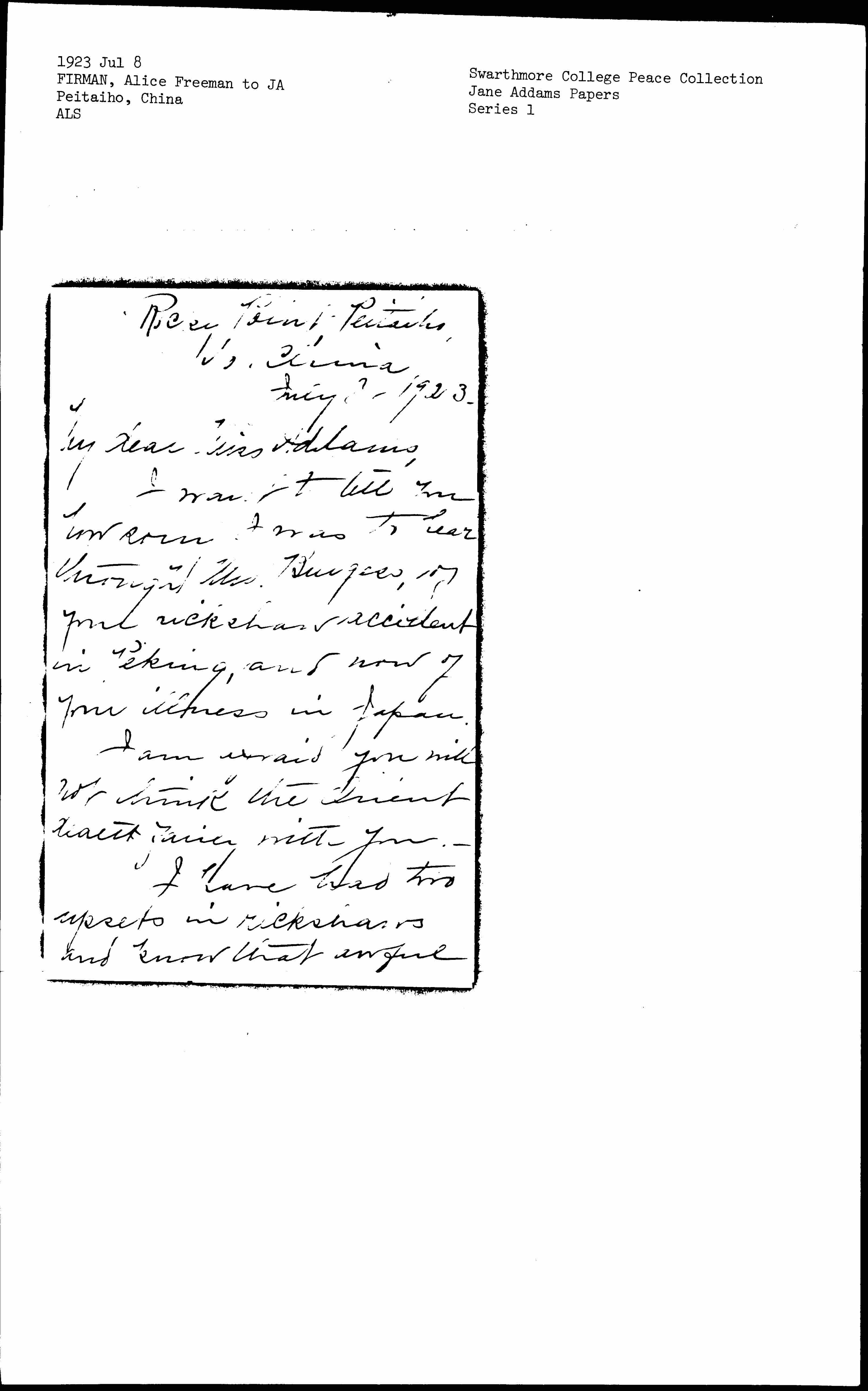 I want [to] tell you how sorry I was to hear through Mrs. Burgess, of your rickshaw accident in Peking, and now of your illness in Japan.