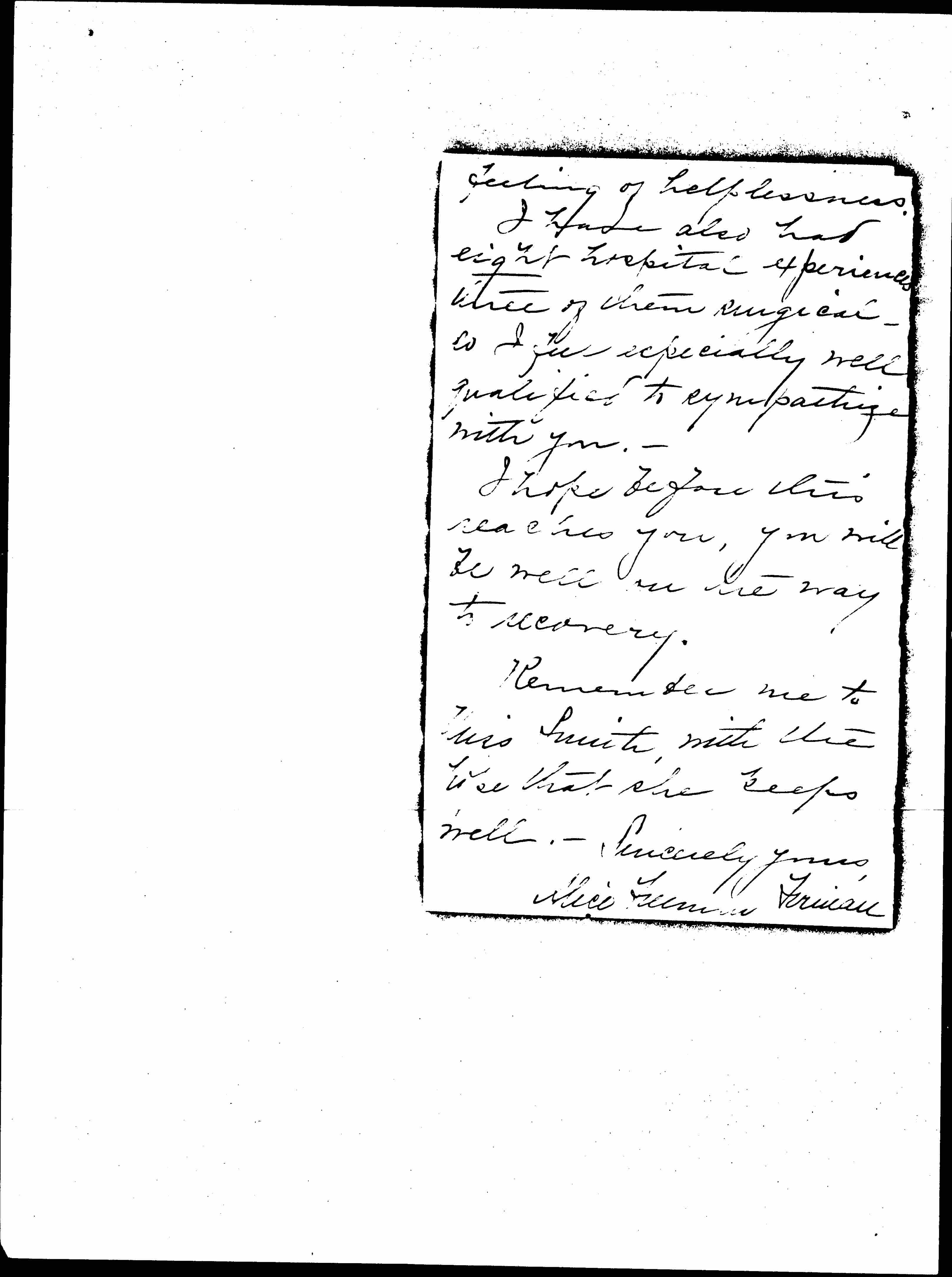 Remember me to Miss Smith, with the hope that she keeps well. -- Sincerely yours,