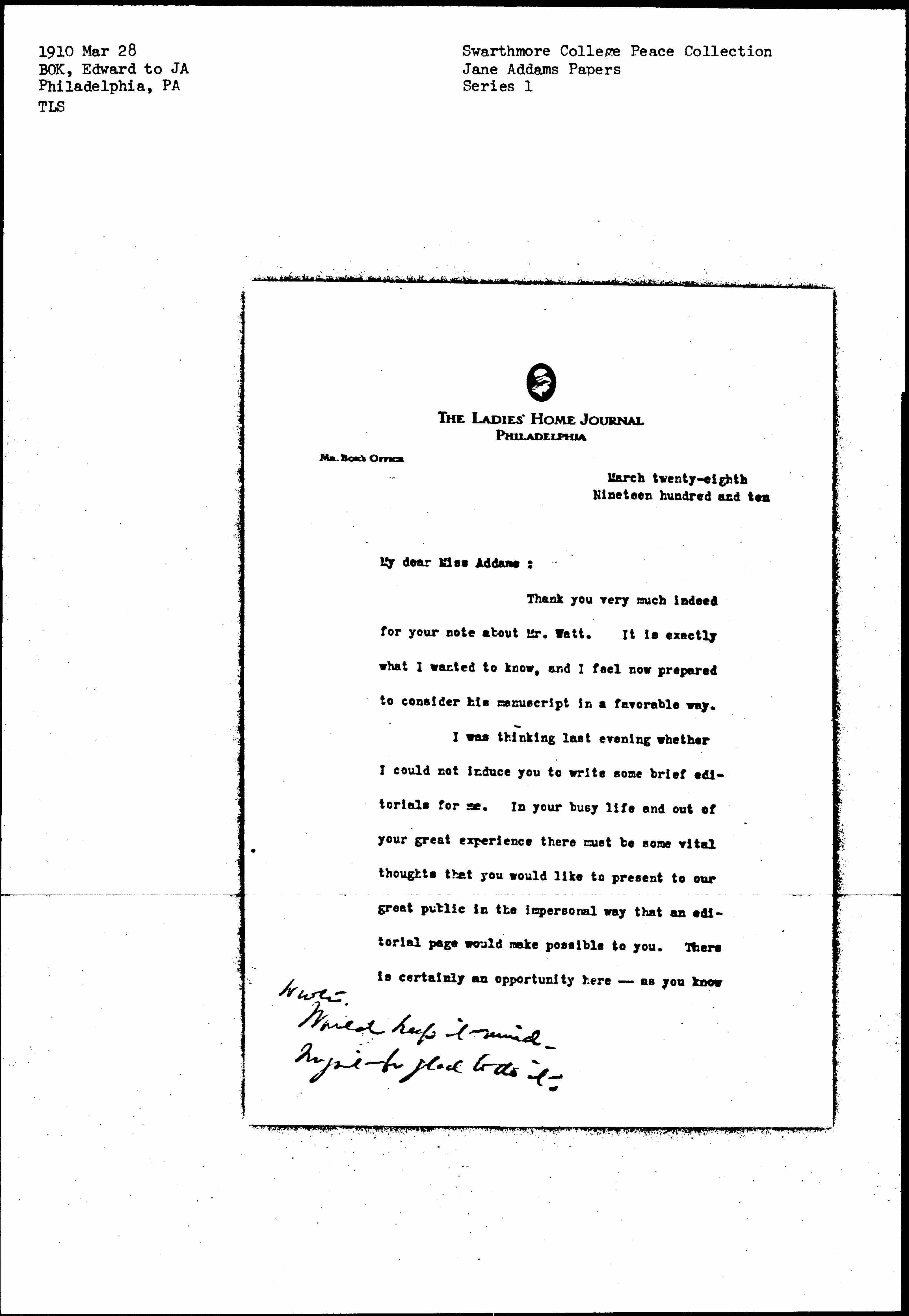 Edward Bok [signed]