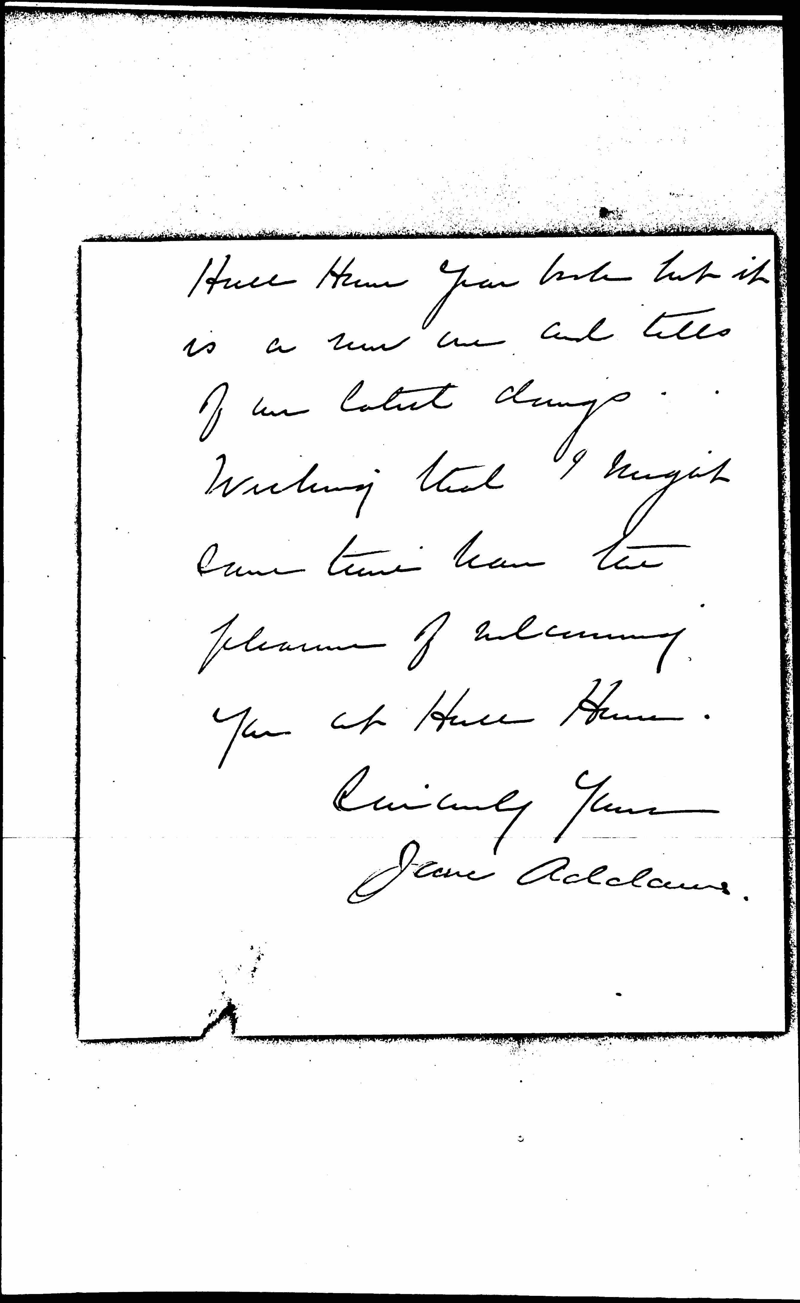 Wishing that I might some time have the pleasure of welcoming you at Hull House.