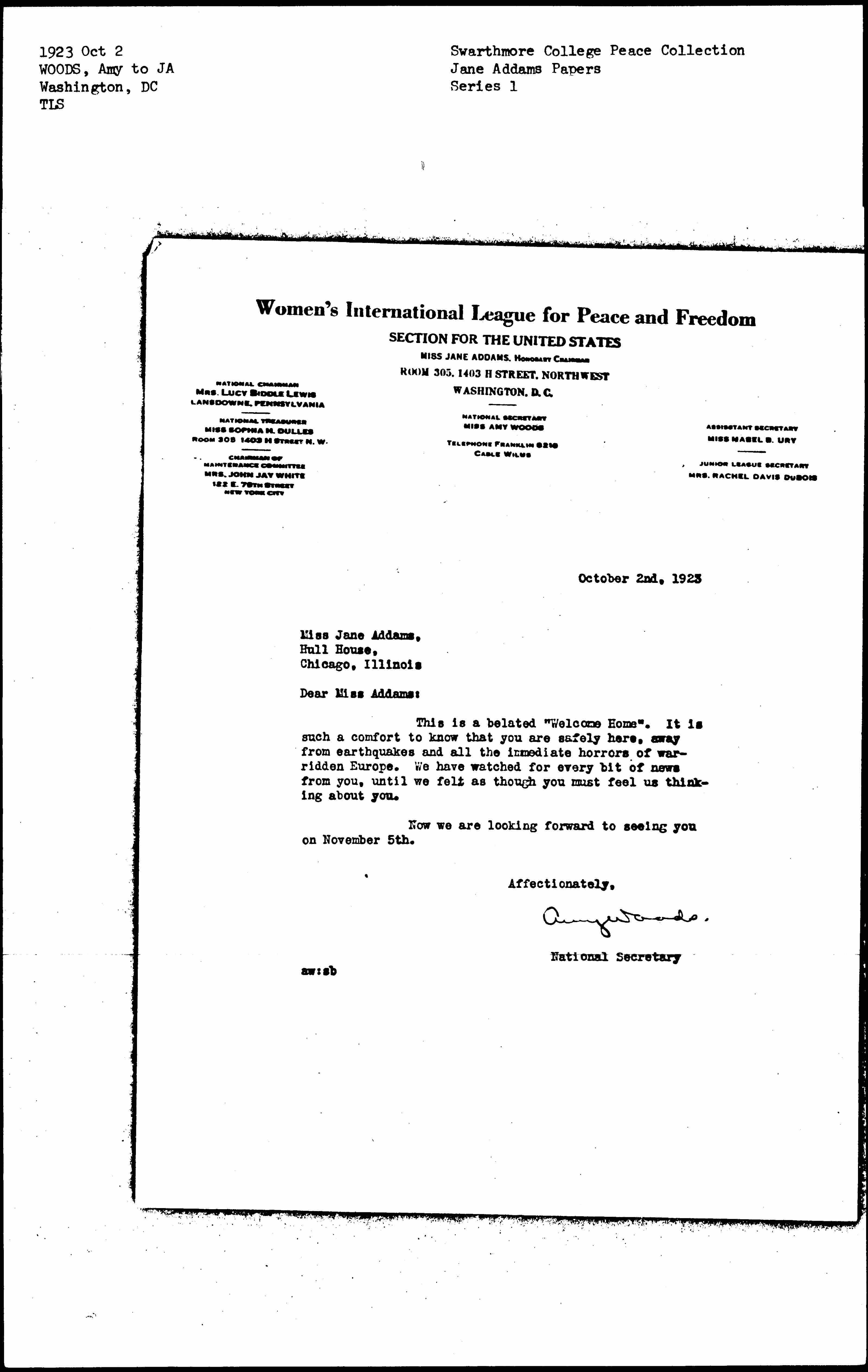Dear Miss Addams:
