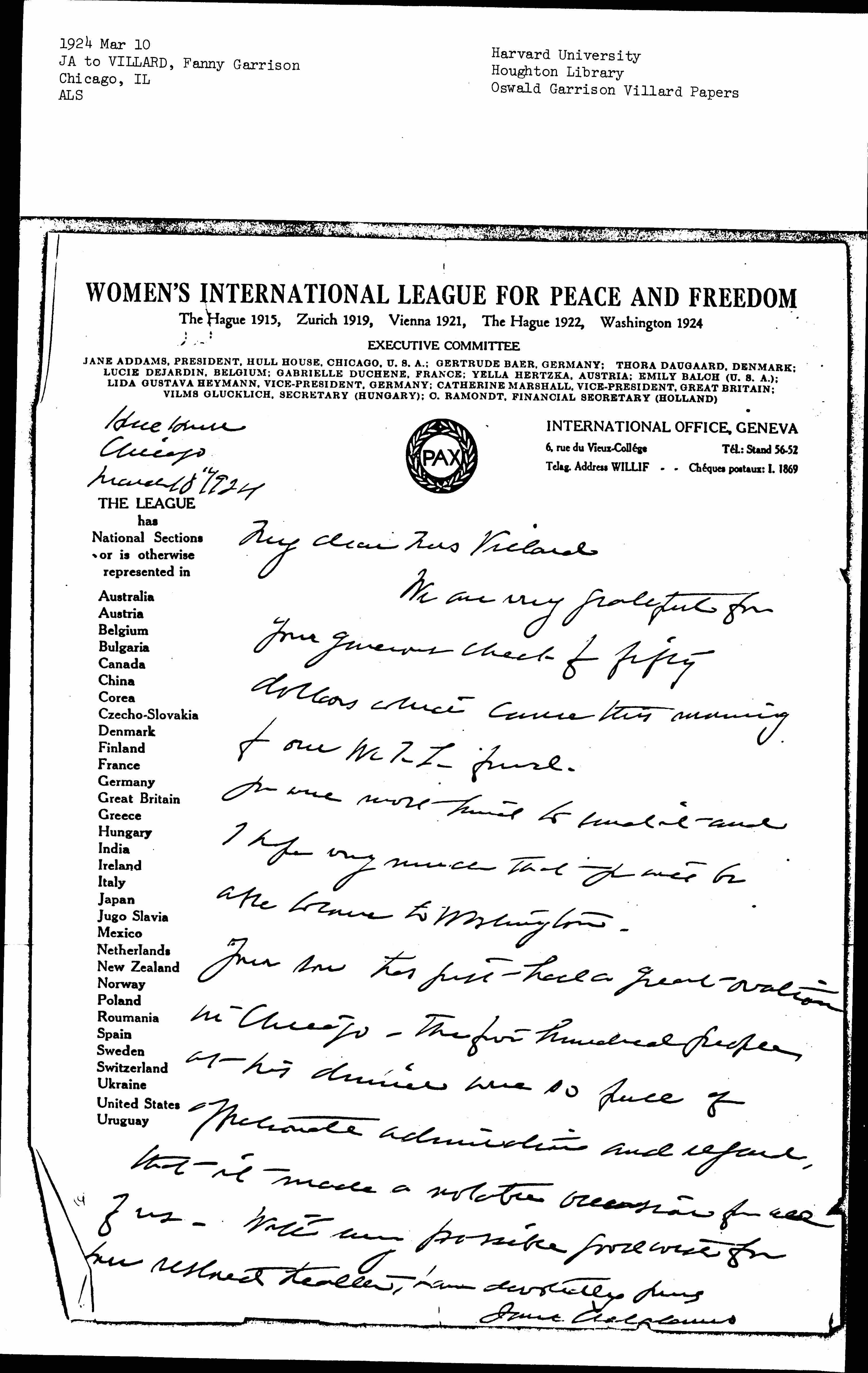 WOMEN'S INTERNATIONAL LEAGUE FOR PEACE AND FREEDOM