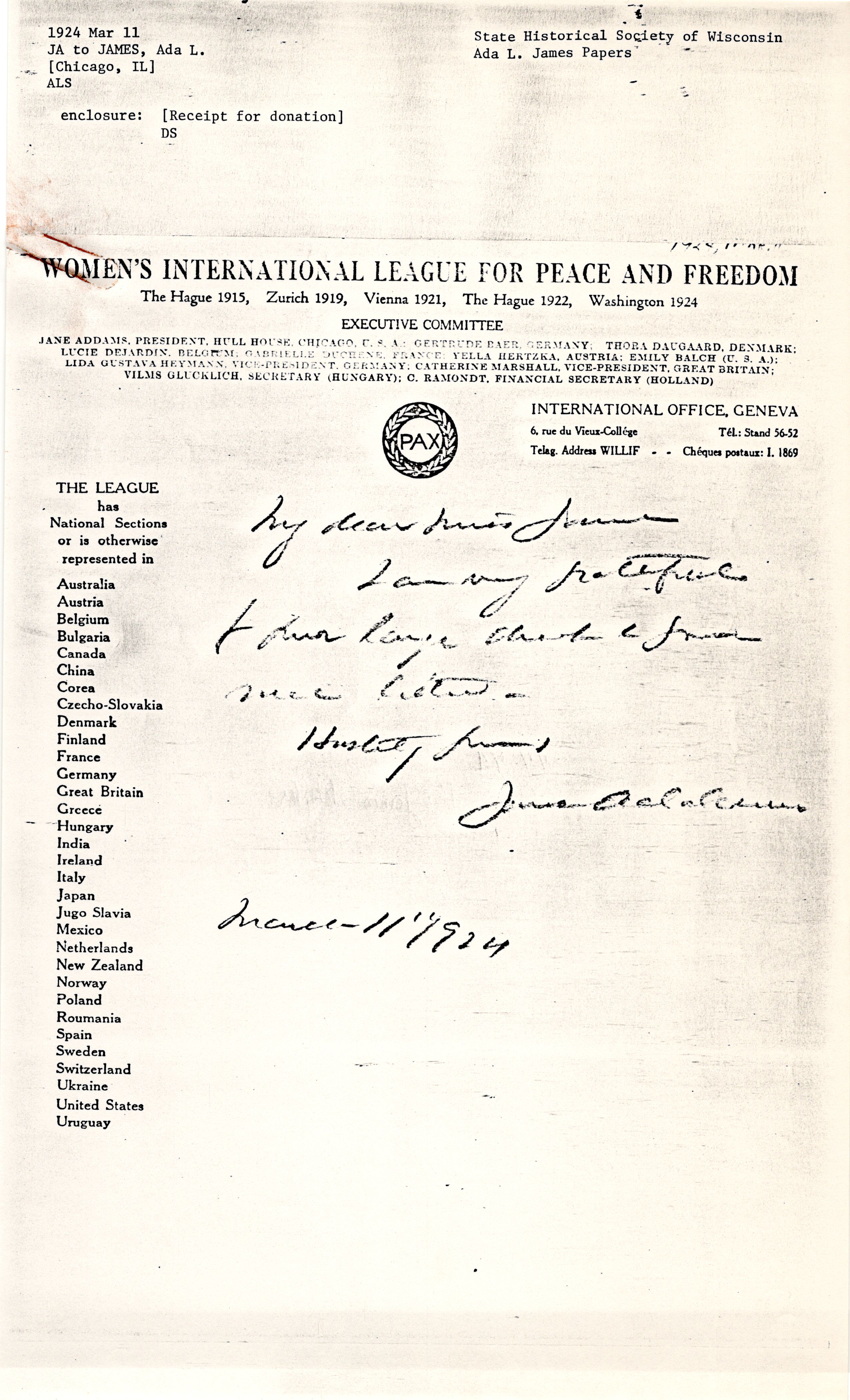 WOMEN'S INTERNATIONAL LEAGUE FOR PEACE AND FREEDOM