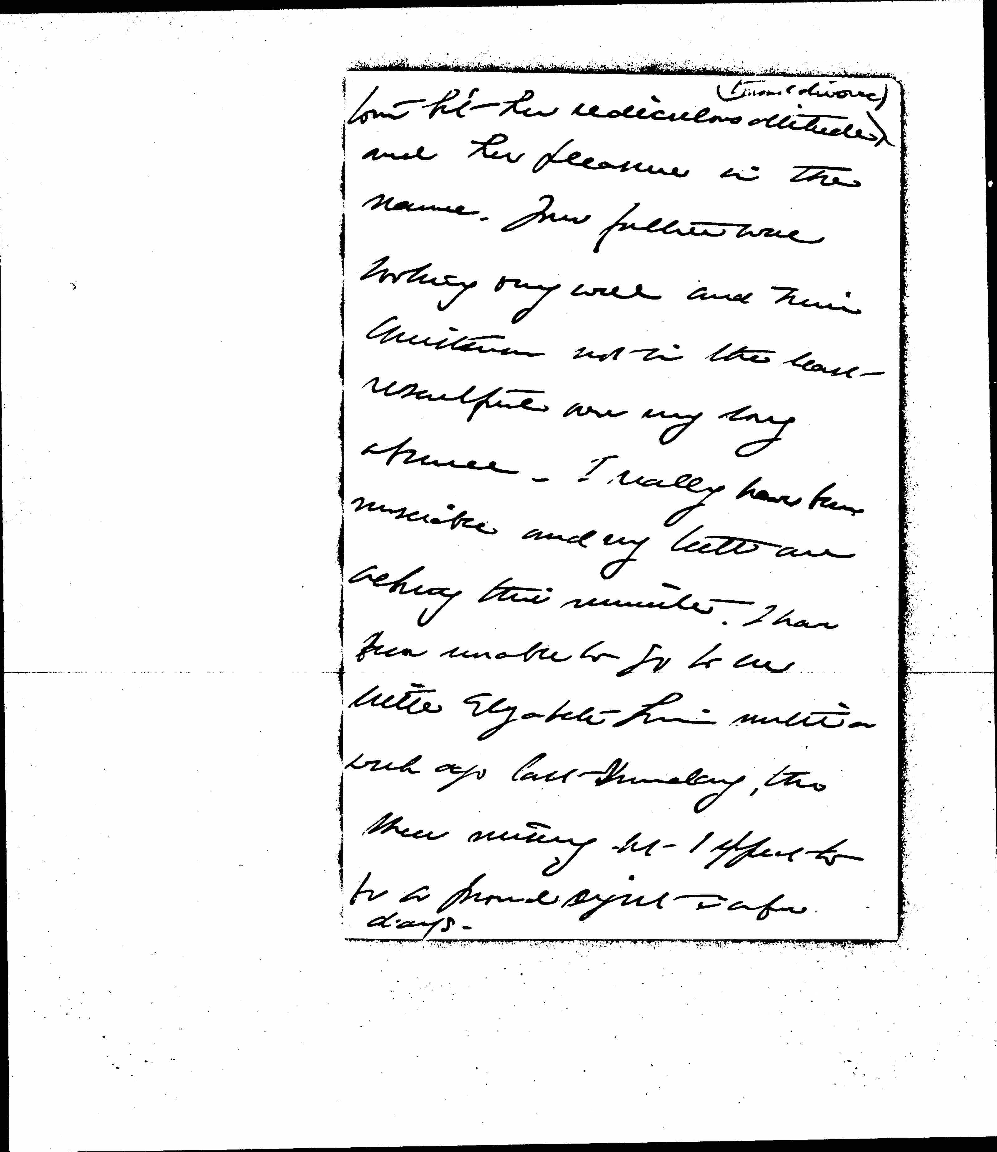 I have been feeling very warm to little Chas Mather and rather amused at Polly's attitude yesterday. She was [page 2] torn bet her [ridiculous] attitude ↑(toward divorce)↓ and her pleasure in the name. Your father was looking very well and Miss Christensen not in the least resentful over my long abscence. I really have been unsociable and my teeth are aching this minute. I have been unable to go to see little Elizabeth Linn until a week ago last Sunday, [though] [illegible] [nursing] but I expect to be a proud [sight] in a few days. [page 3]