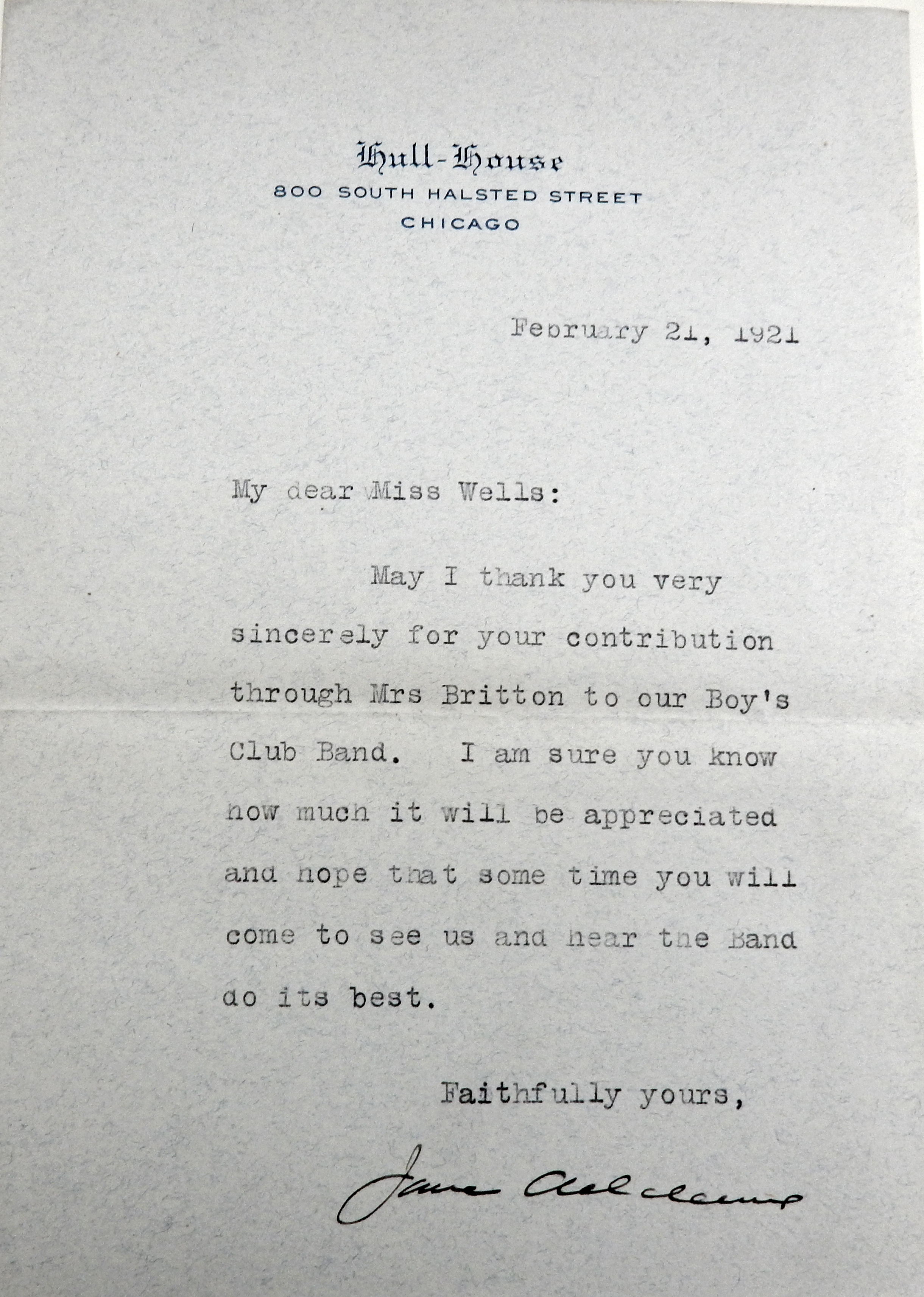 Jane Addams [signed]