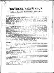 The International Catholic League has established itself without any reservations upon the principles of the Encyclical "Ubi Arcano Dei" and other papal manifestoes. On this foundation and in close union with the ecclesiastical authorities, it strives to promote the peaceful [cooperation] of all Catholics, for the strengthening of Christian concord between peoples, on the one hand; and on the other, for the [defense] of Holy Church in the present international conflicts, against Her international opponents: (Freemasonry; Communism; an anti-Catholic Press.)