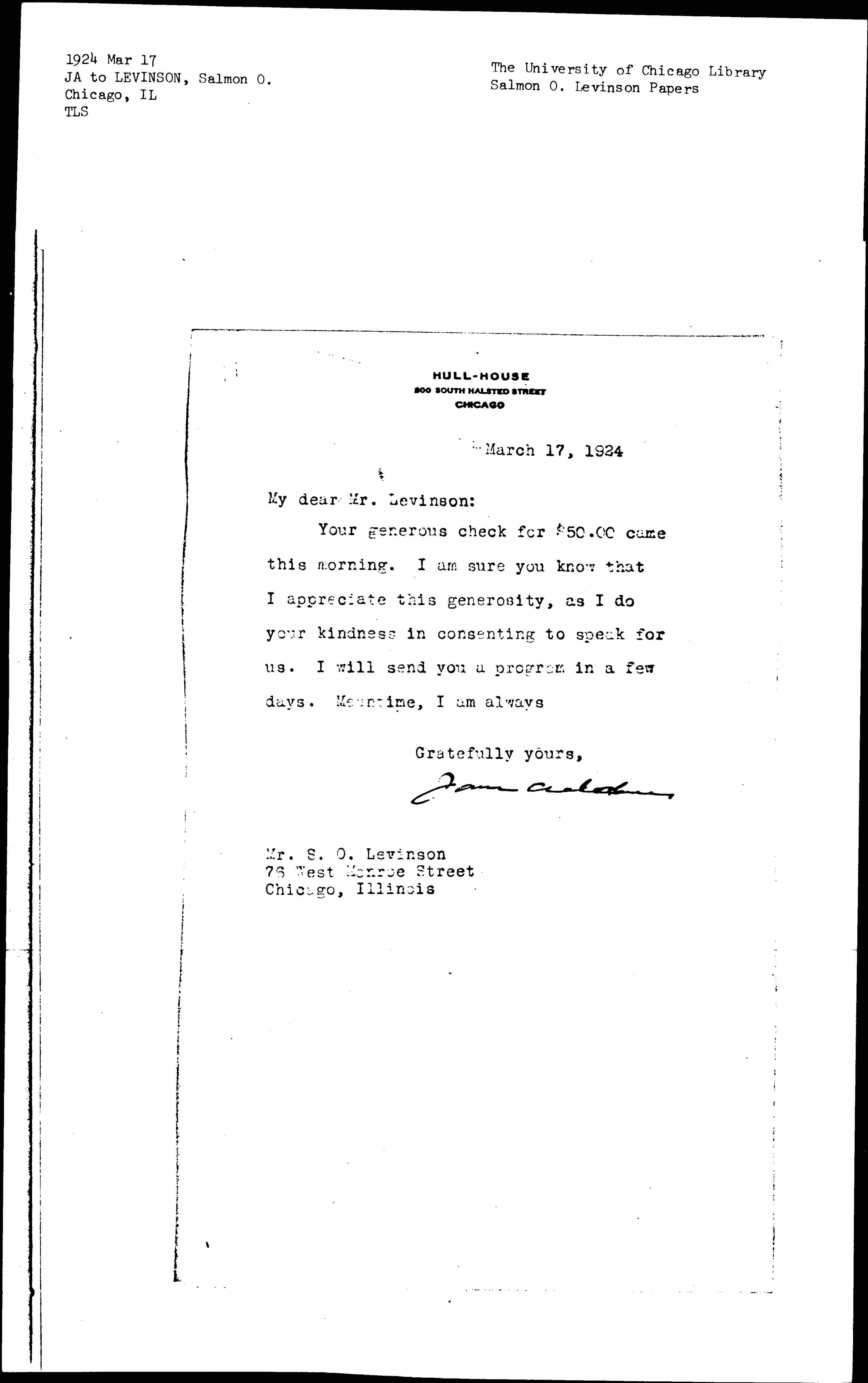 Jane Addams [signed]