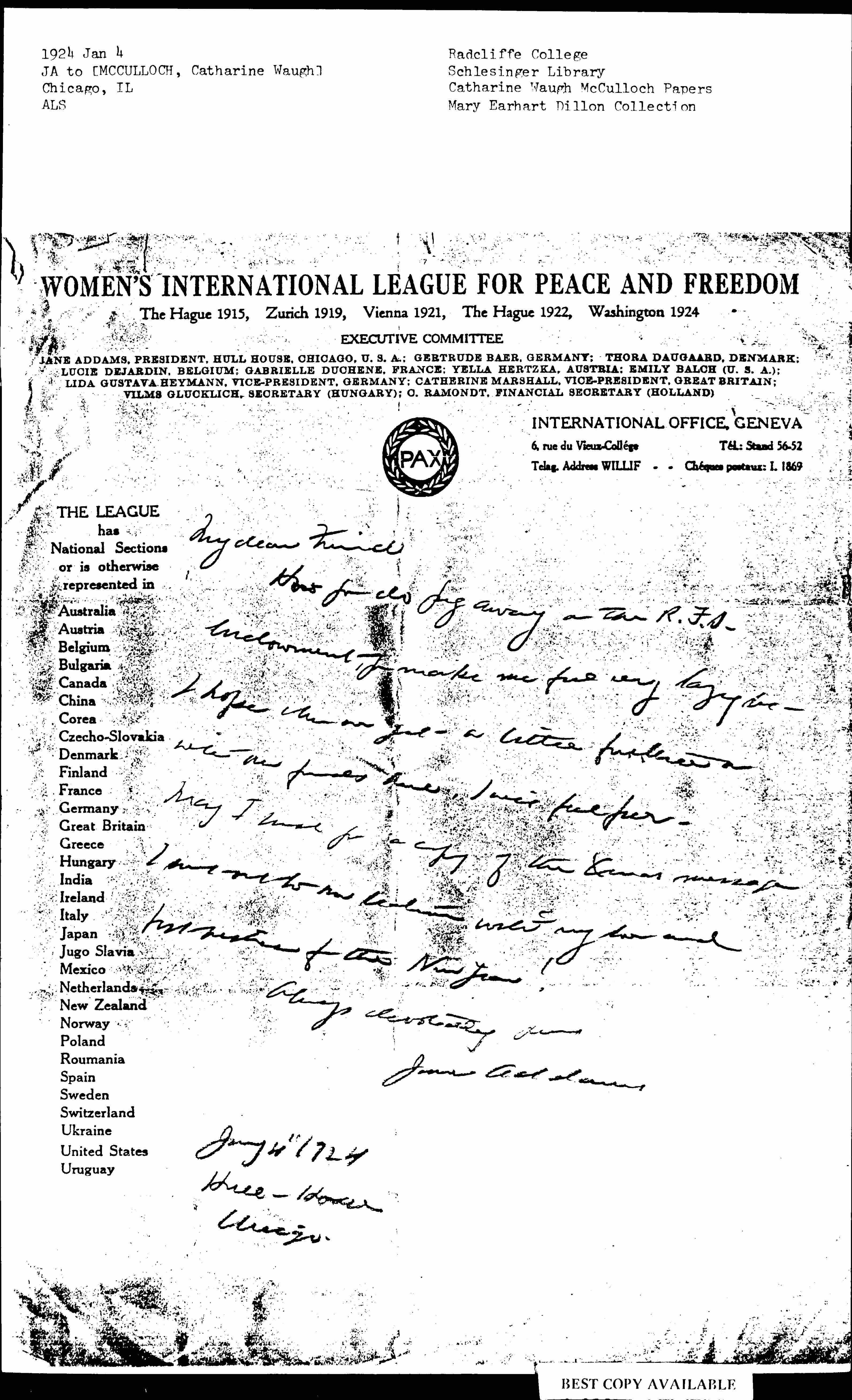 WOMEN’S INTERNATIONAL LEAGUE FOR PEACE AND FREEDOM