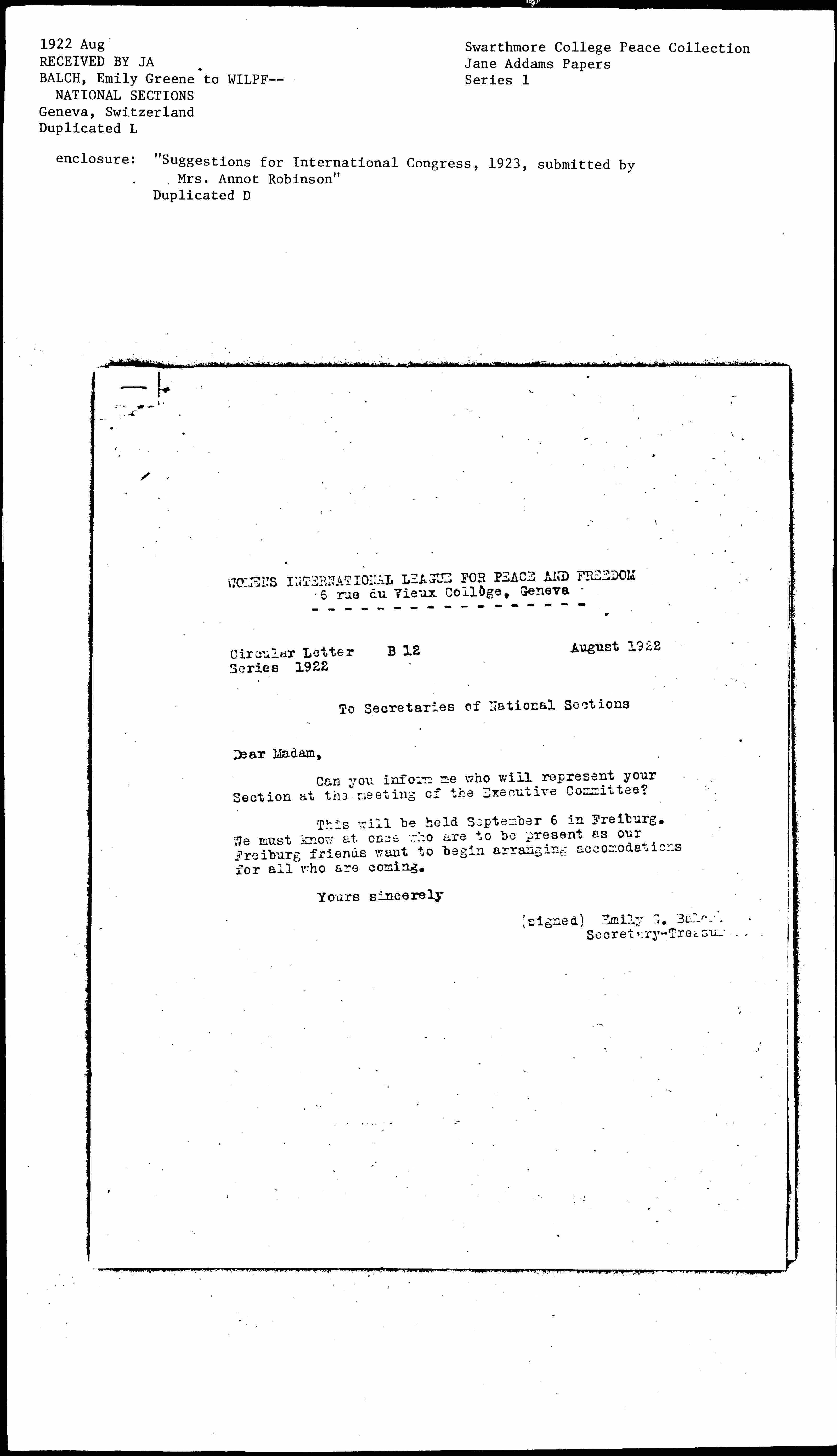 (signed) Emily G. Balch
