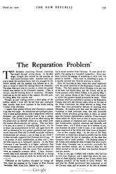 The discussion concerning German reparation has passed through various phases. In the first stage, thought was [centered] on the question of how much Germany owed. Statistics were complied to show the enormous havoc and ruin wrought by the German armies, and the question was debated as to the values in terms of which this damage should be computed. This phase then gave way to a second, in which the crucial question was deemed to be Germany's capacity. This, it was said, was the limiting factor in reparation. Germany should pay to the full extent of her capacity, the only question being what that capacity was.