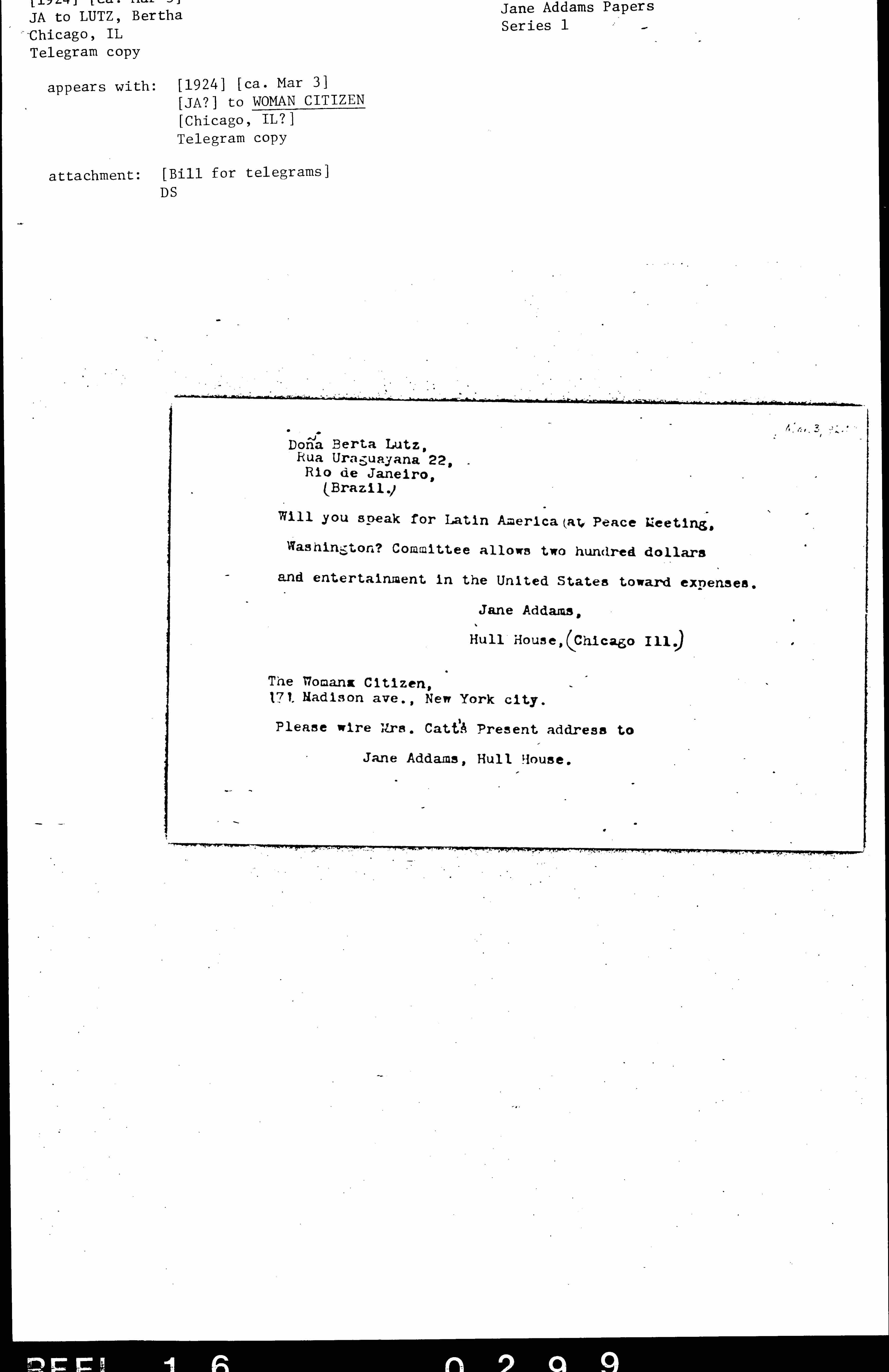 Will you speak for Latin America at Peace Meeting, Washington? Committee allows two hundred dollars and entertainment in the United States toward expenses.