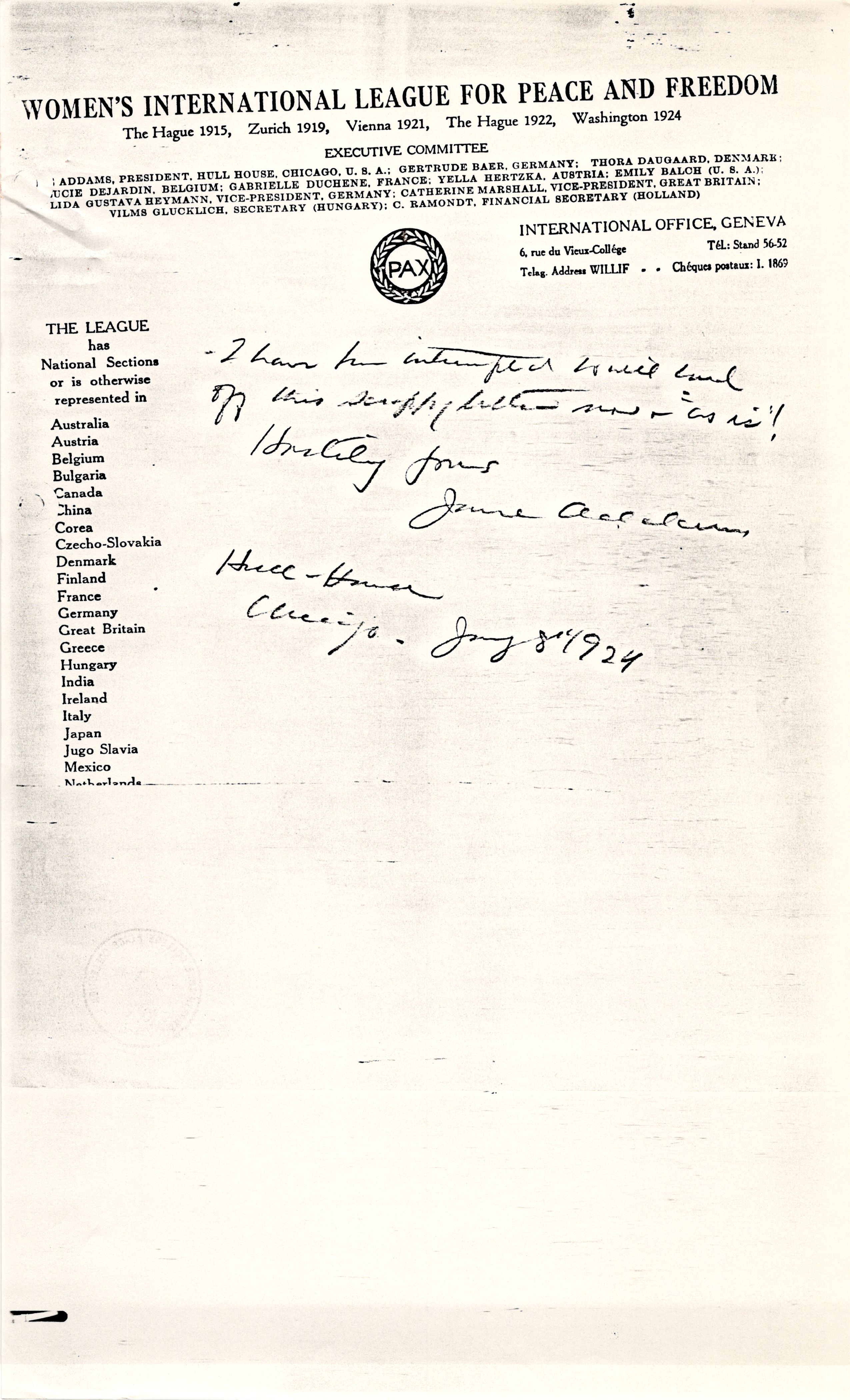 WOMEN'S INTERNATIONAL LEAGUE FOR PEACE AND FREEDOM