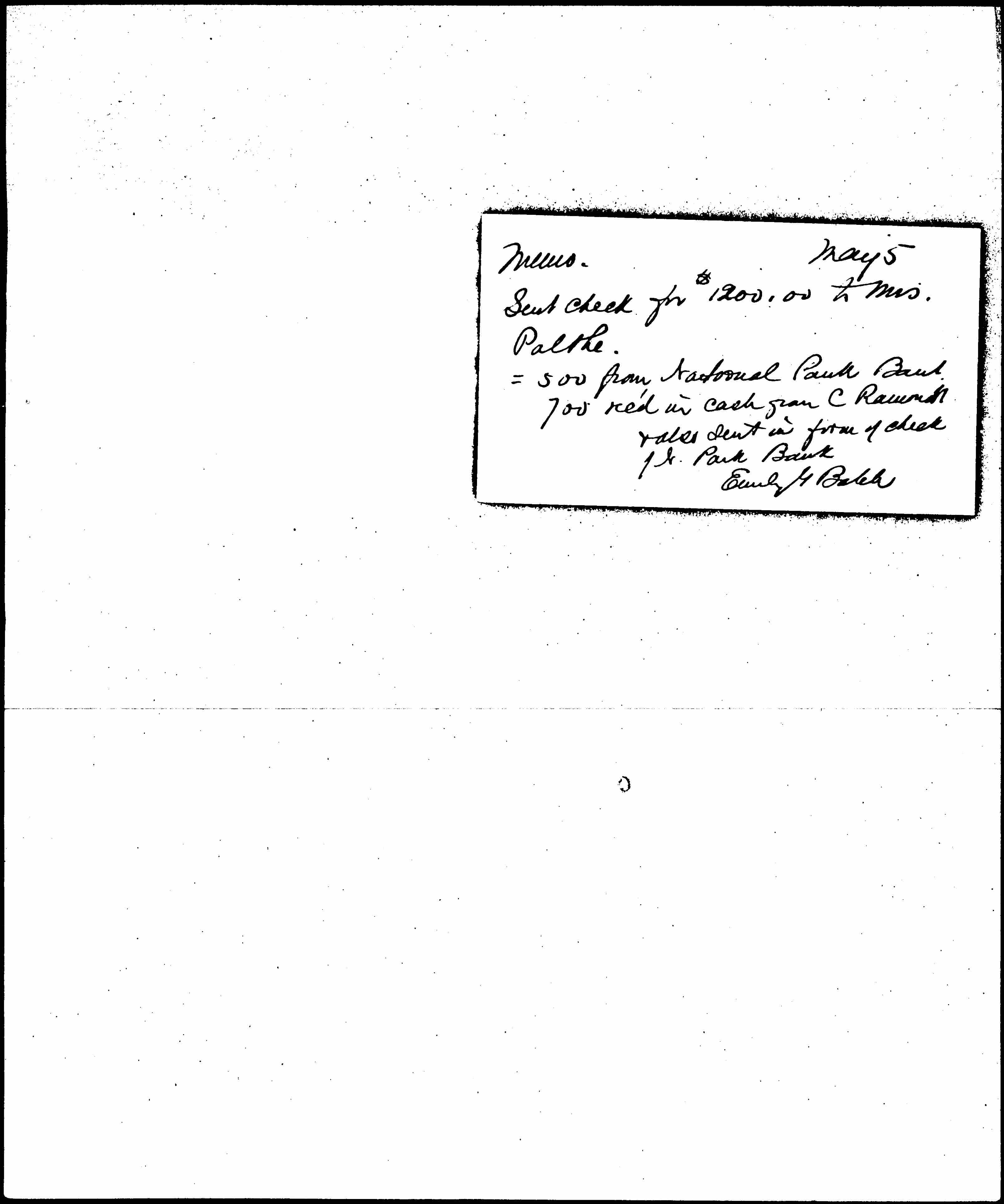 700 rec'd in cash from C. Ramondt & also sent in form of check N. Park Bank