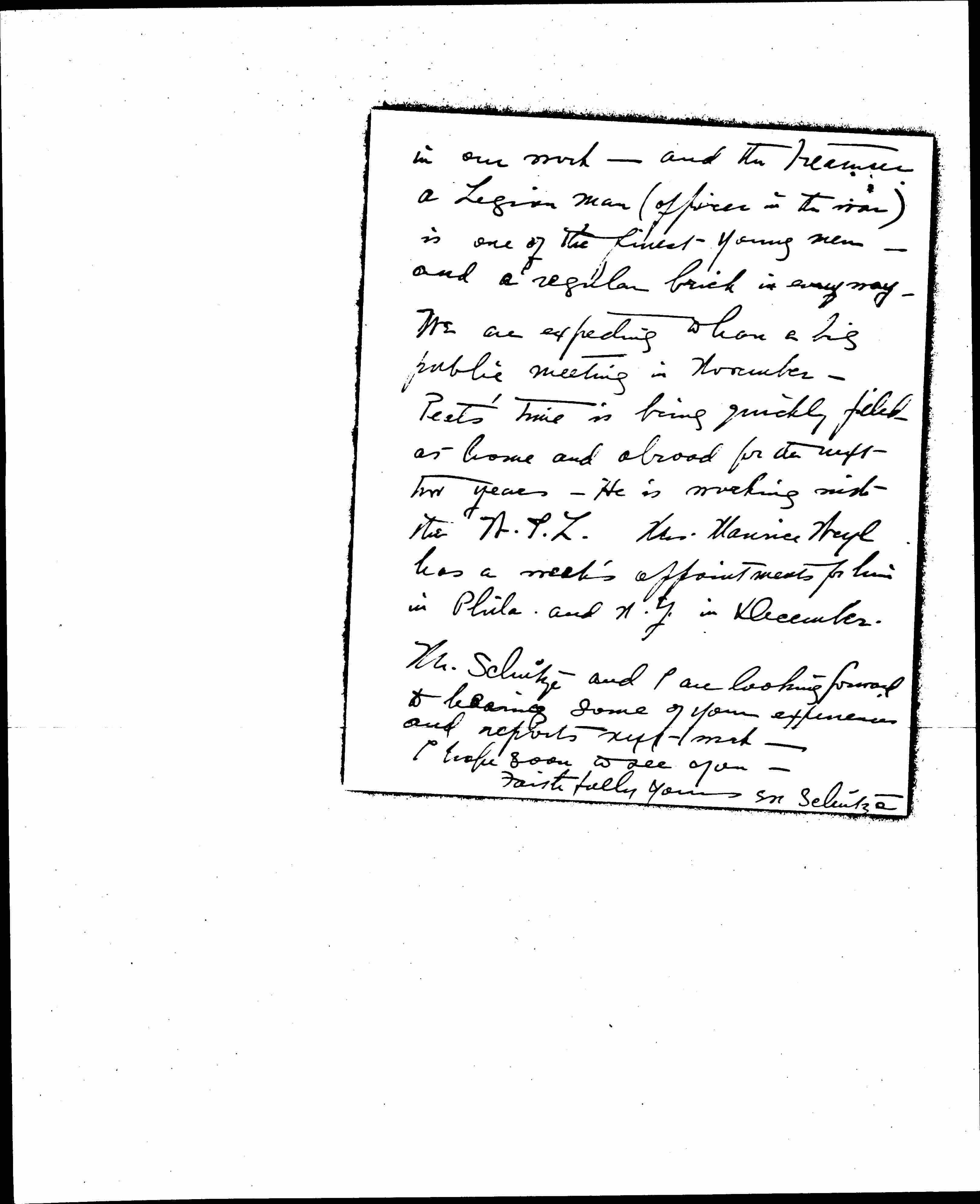 Mr. Schütze and I are looking forward to hearing some of your experiences and reports next week -- I hope soon to see you --
