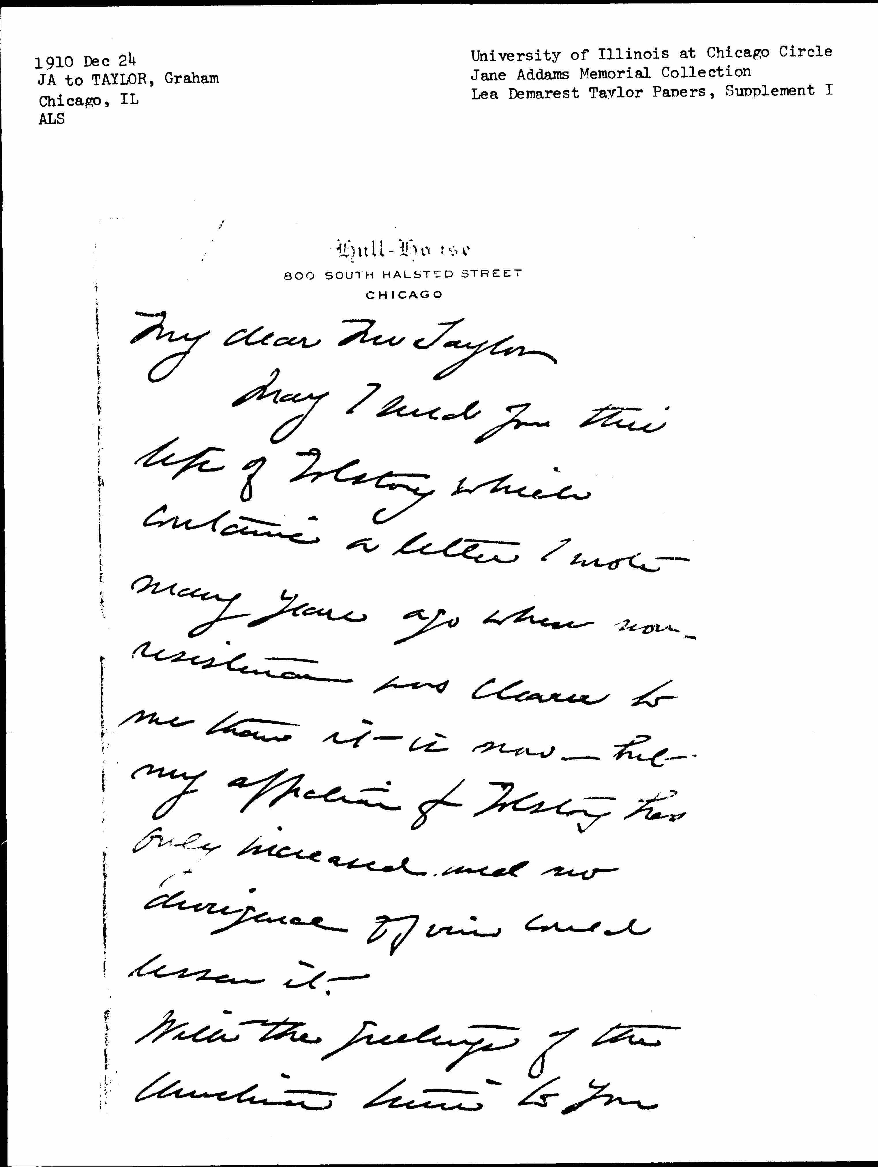 With the greetings of the Christmas time to you [page 2] and all your [big] household I am always faithfully yours Jane Addams