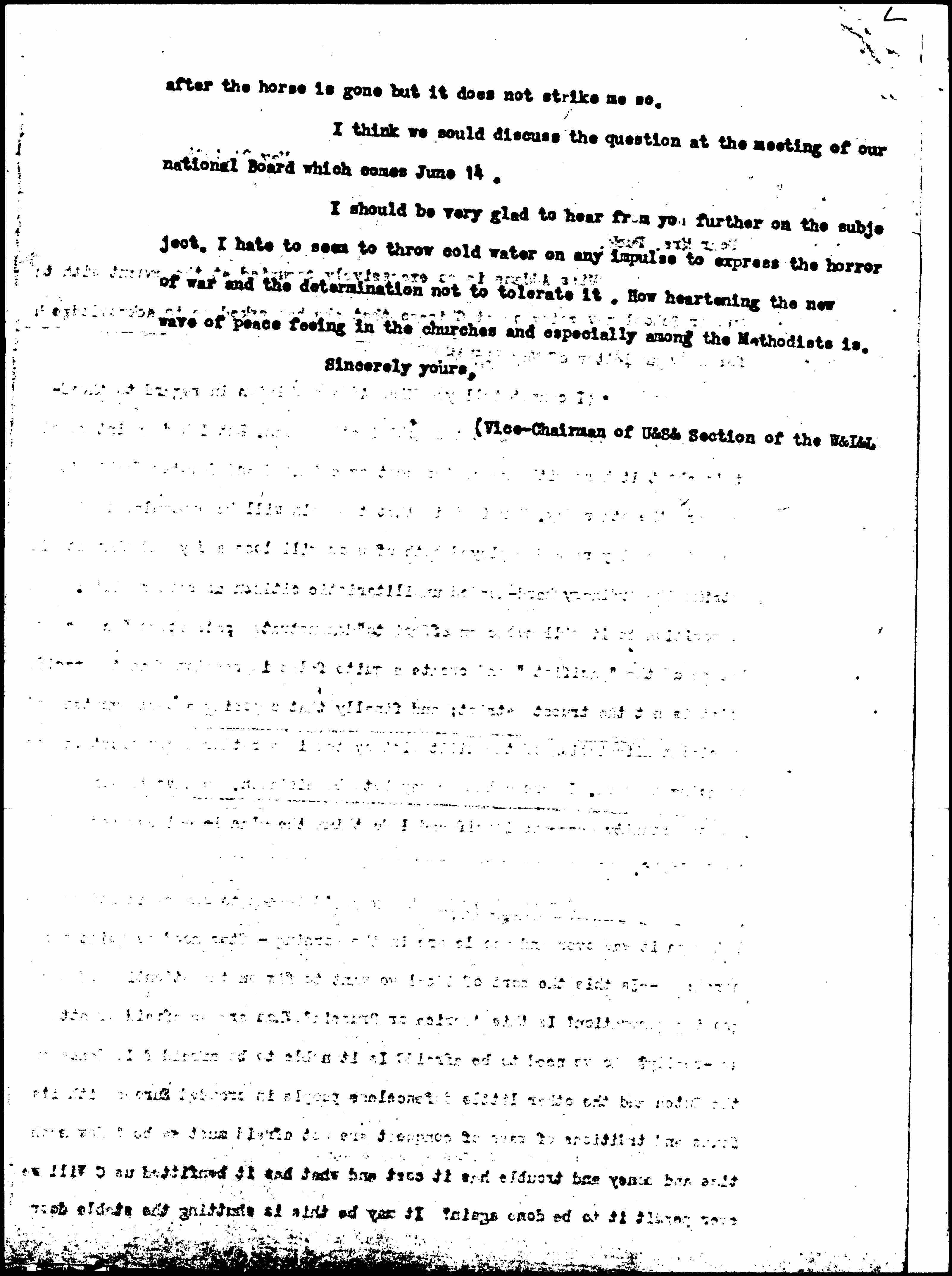 I should be very glad to hear from you further on the subject. I hate to seem to throw cold water on any impulse to express the horror of war and the determination not to tolerate it. How heartening the new wave of peace [feeling] in the churches and especially among the Methodists is.