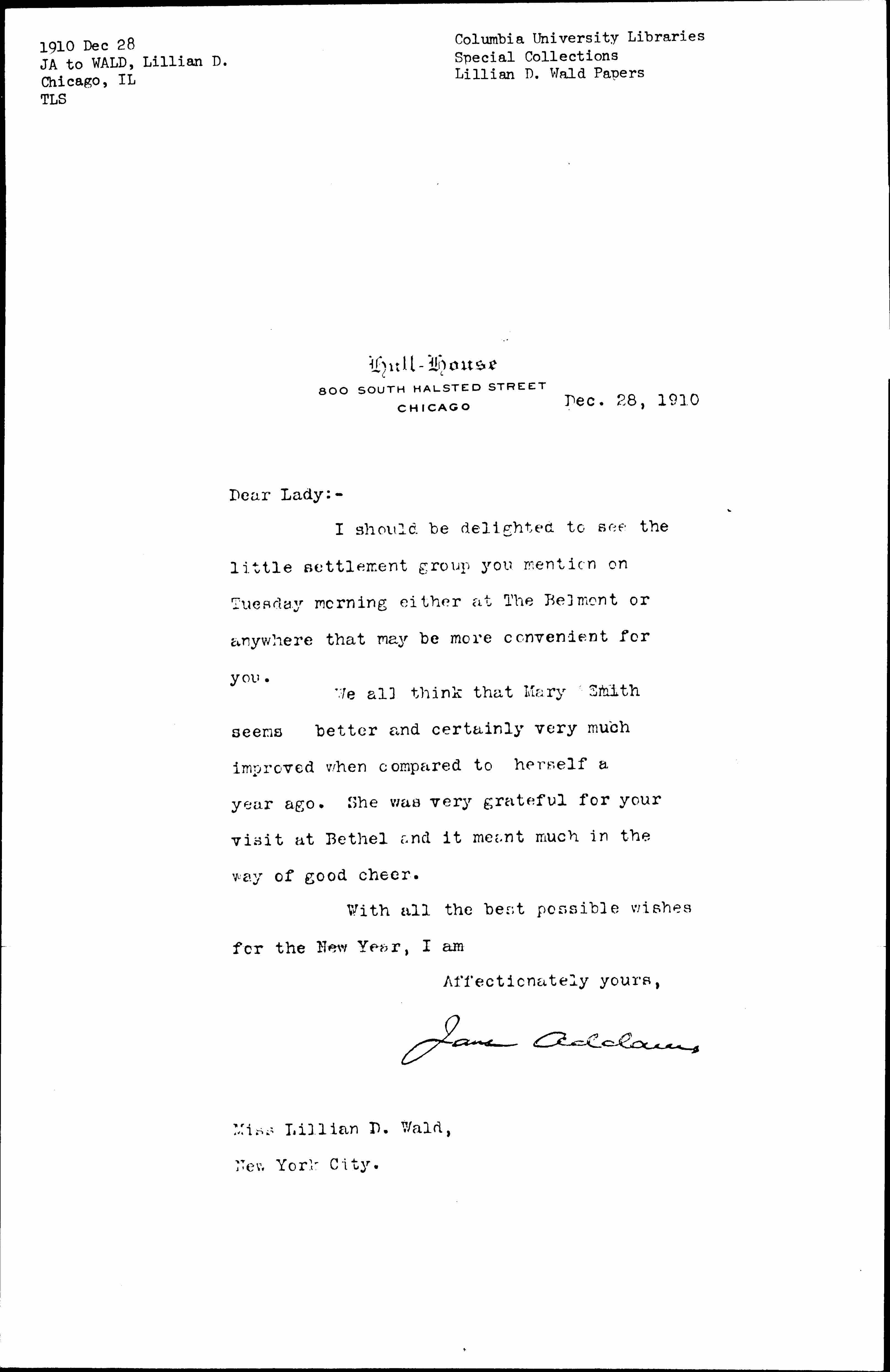 Jane Addams [signed]
