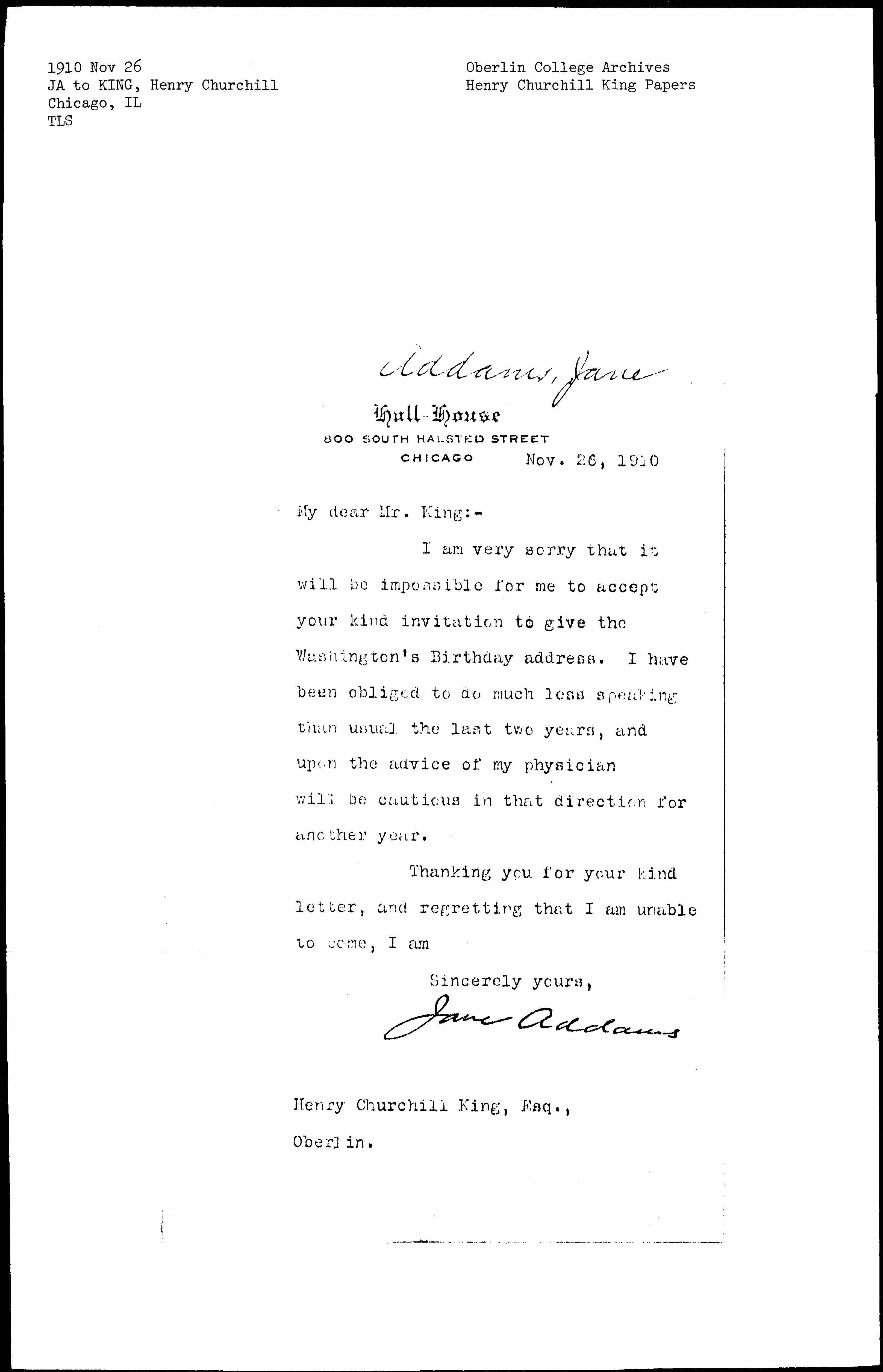 Jane Addams [signed]