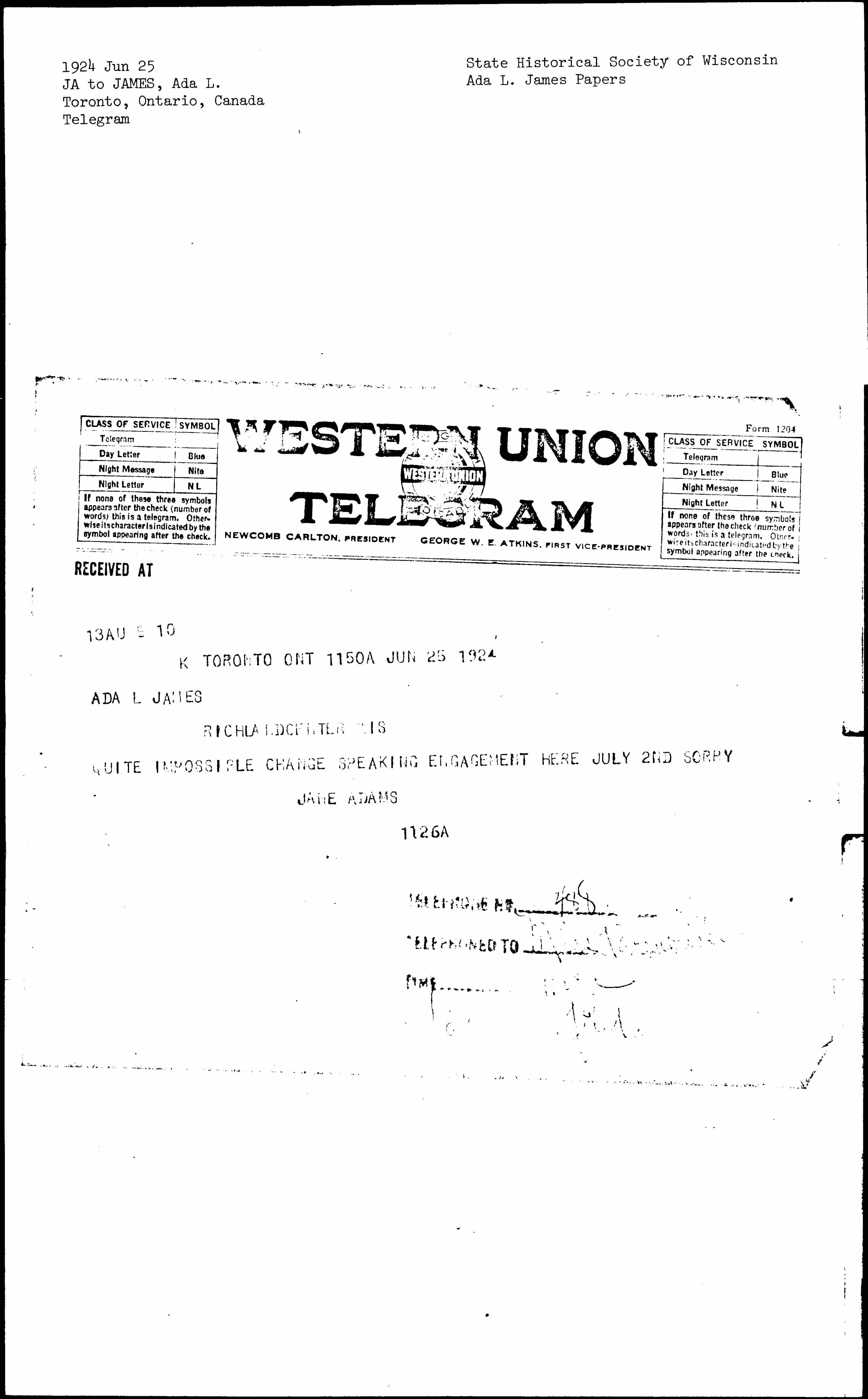 TORONTO ONT 1150 A JUN 25 1924