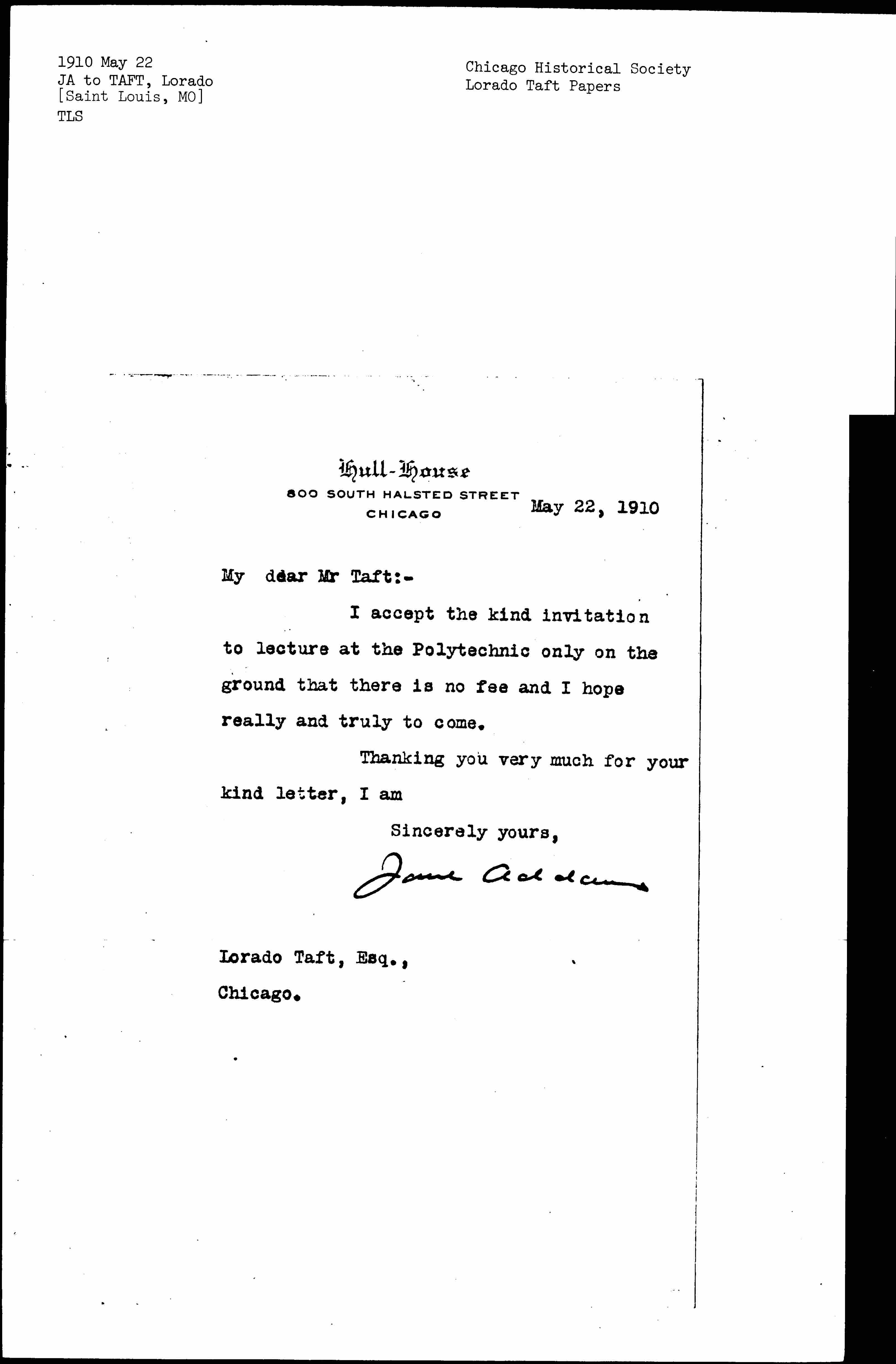 Jane Addams [signed]