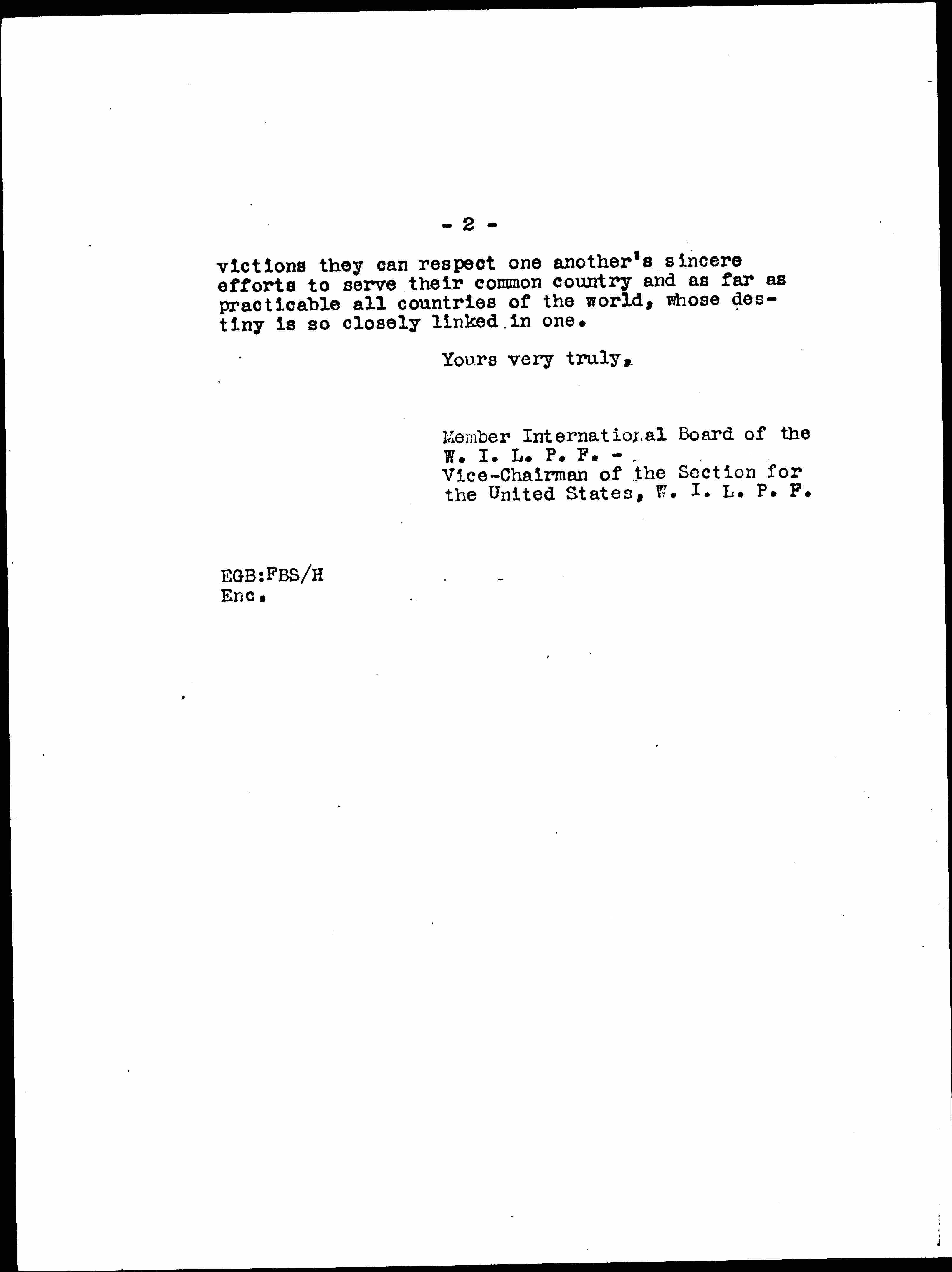 In any case, pacifists and militarists alike, when honest and rightminded, have surely the same goal -- an orderly world where constructive cooperation shall replace destructive conflict. While differing as to the means leading to this goal and working each according to their own convictions [page 2] they can respect one another's sincere efforts to serve their common country and as far as practicable all countries of the world, whose destiny is so closely linked in one.