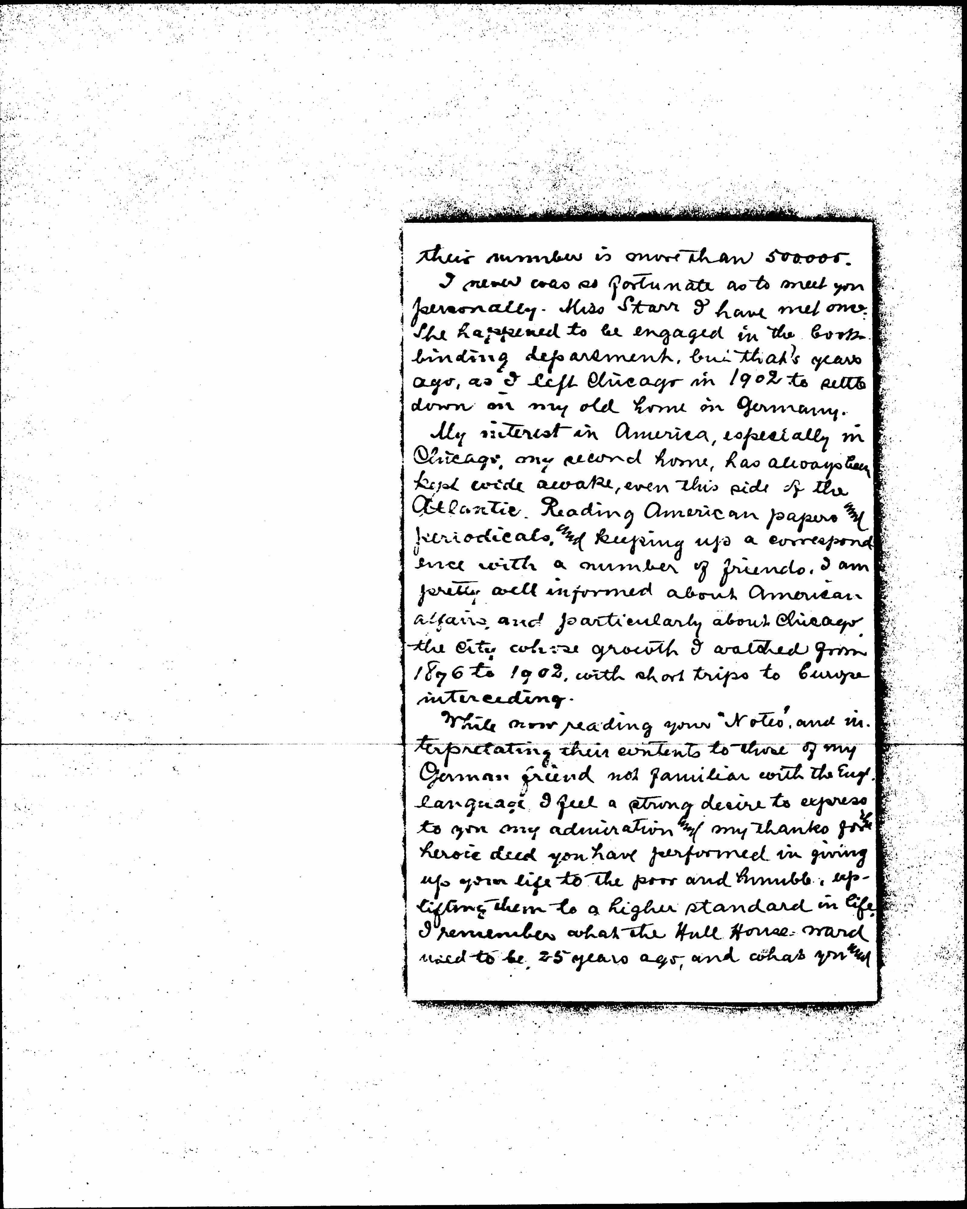 I never was so fortunate as to meet you personally. Miss Starr I have met once. She happened to be engaged in the book binding department, but that's years ago, as I left Chicago in 1902 to settle down in my old home in Germany.