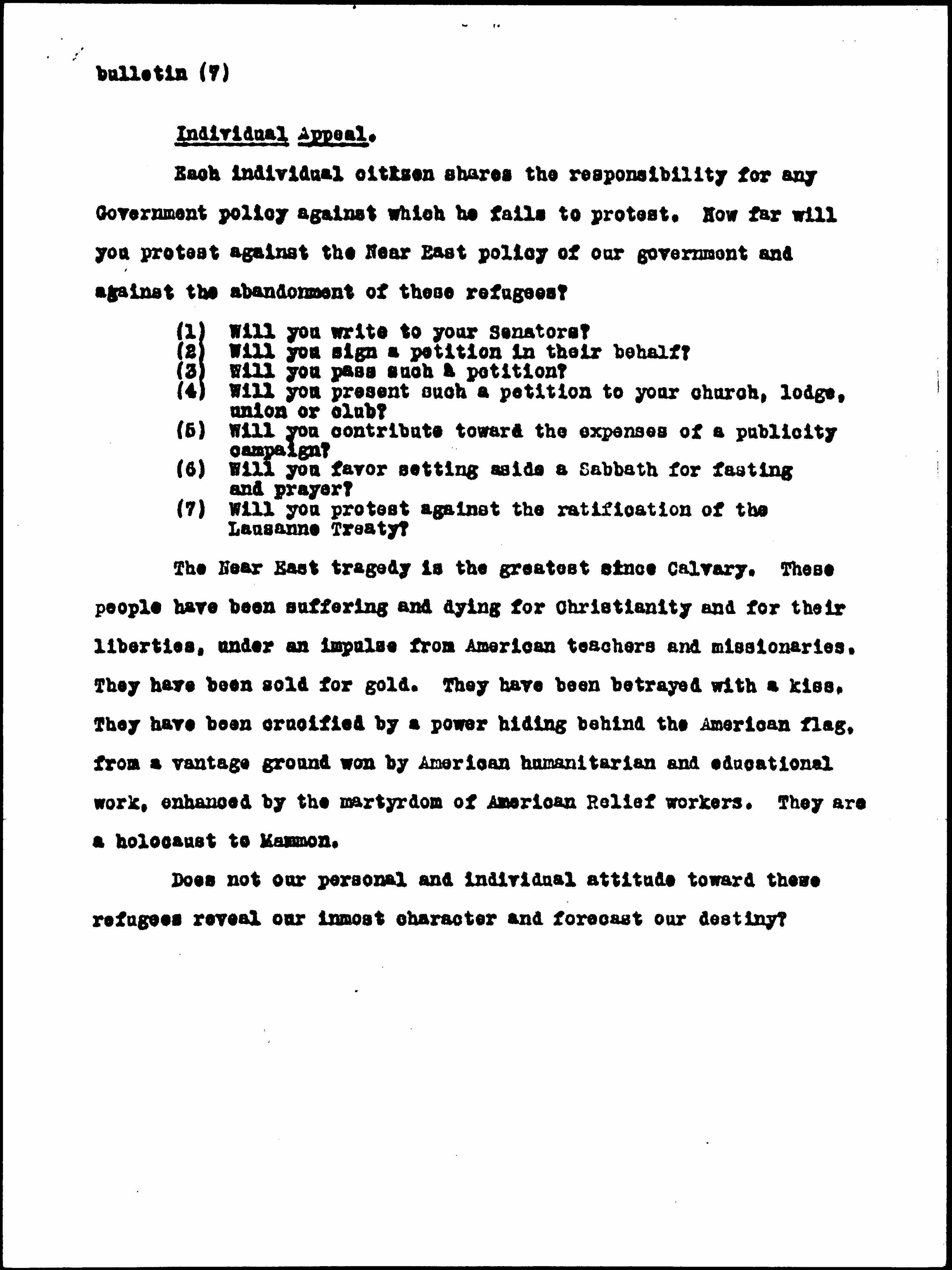 (7) Will you protest against the ratification of the Lausanne Treaty?