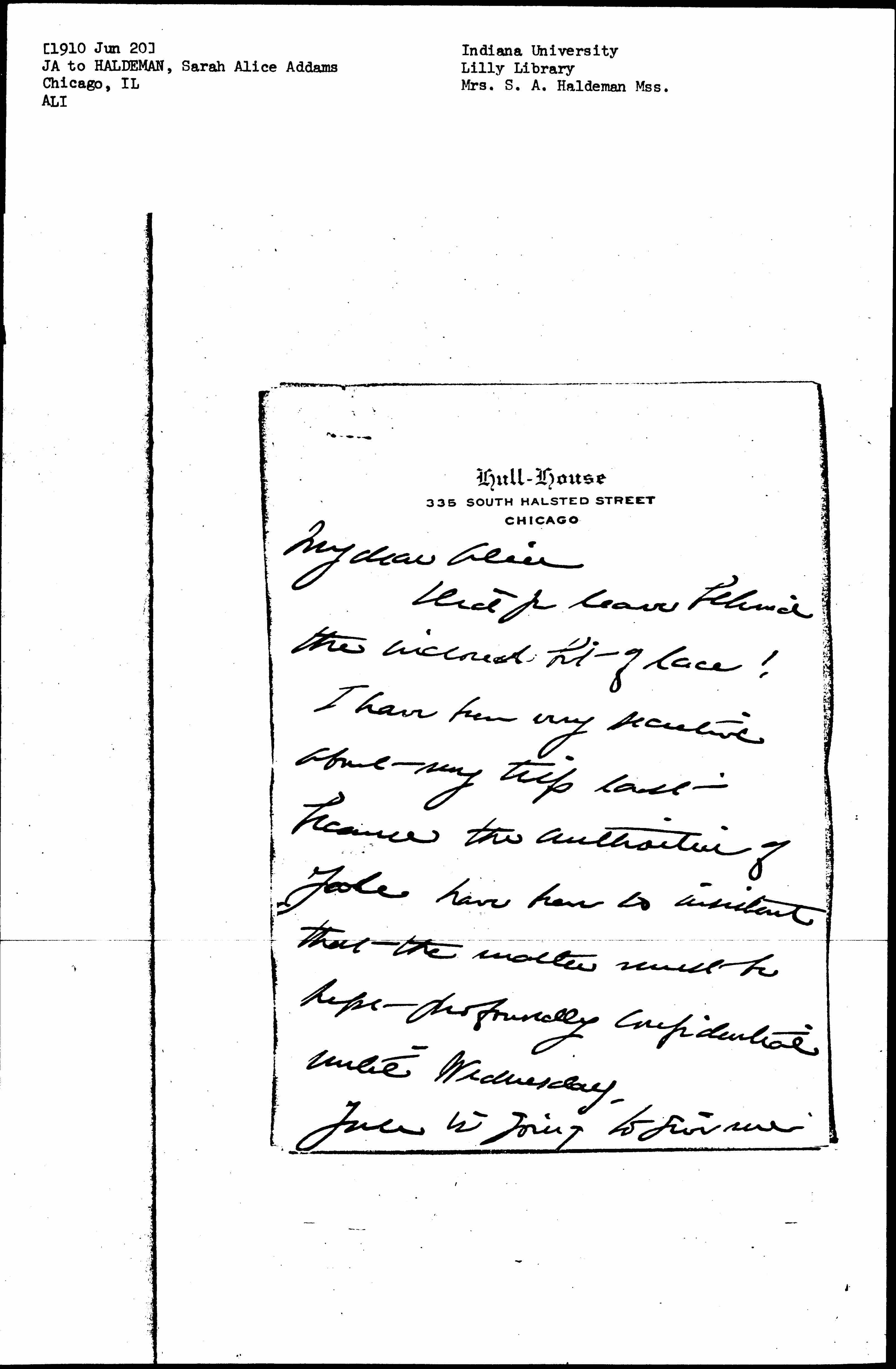 Yale is going to give me [page 2] an honorary M.A. on Wednesday and as this is the first honorary degree that Yale has ever given to a woman, they seem to treat it rather heavily. There seems to be very little danger now that the papers will get it, and I wanted you to know before I start this afternoon -- [page 3]