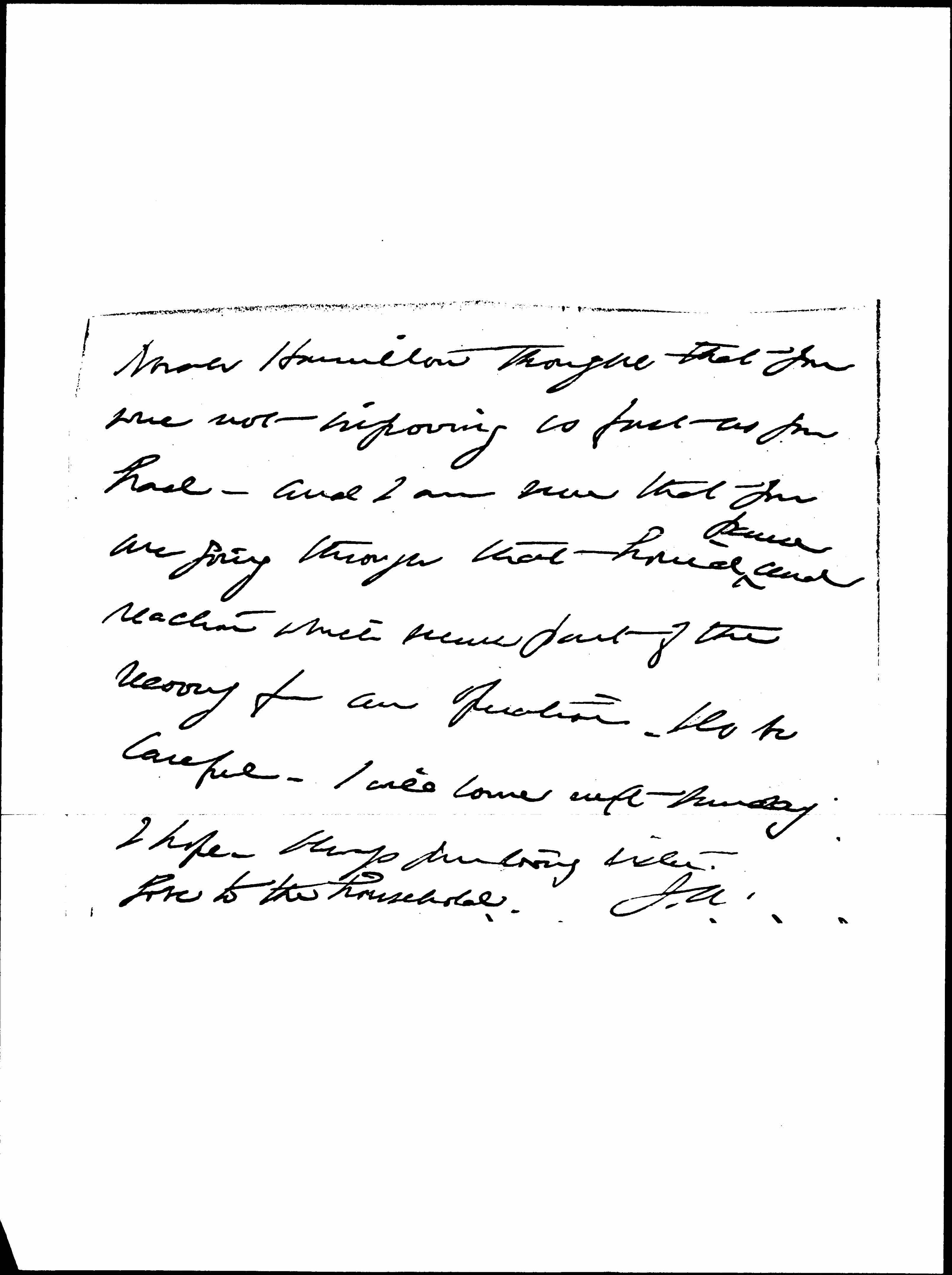 Norah Hamilton thought that you were not improving as fast as you had -- and I am sure that you are going through that horrid ↑pause↓ and reaction which seems part of the recovery from an operation. Do be careful. I will come next Sunday I hope. Always your loving sister.