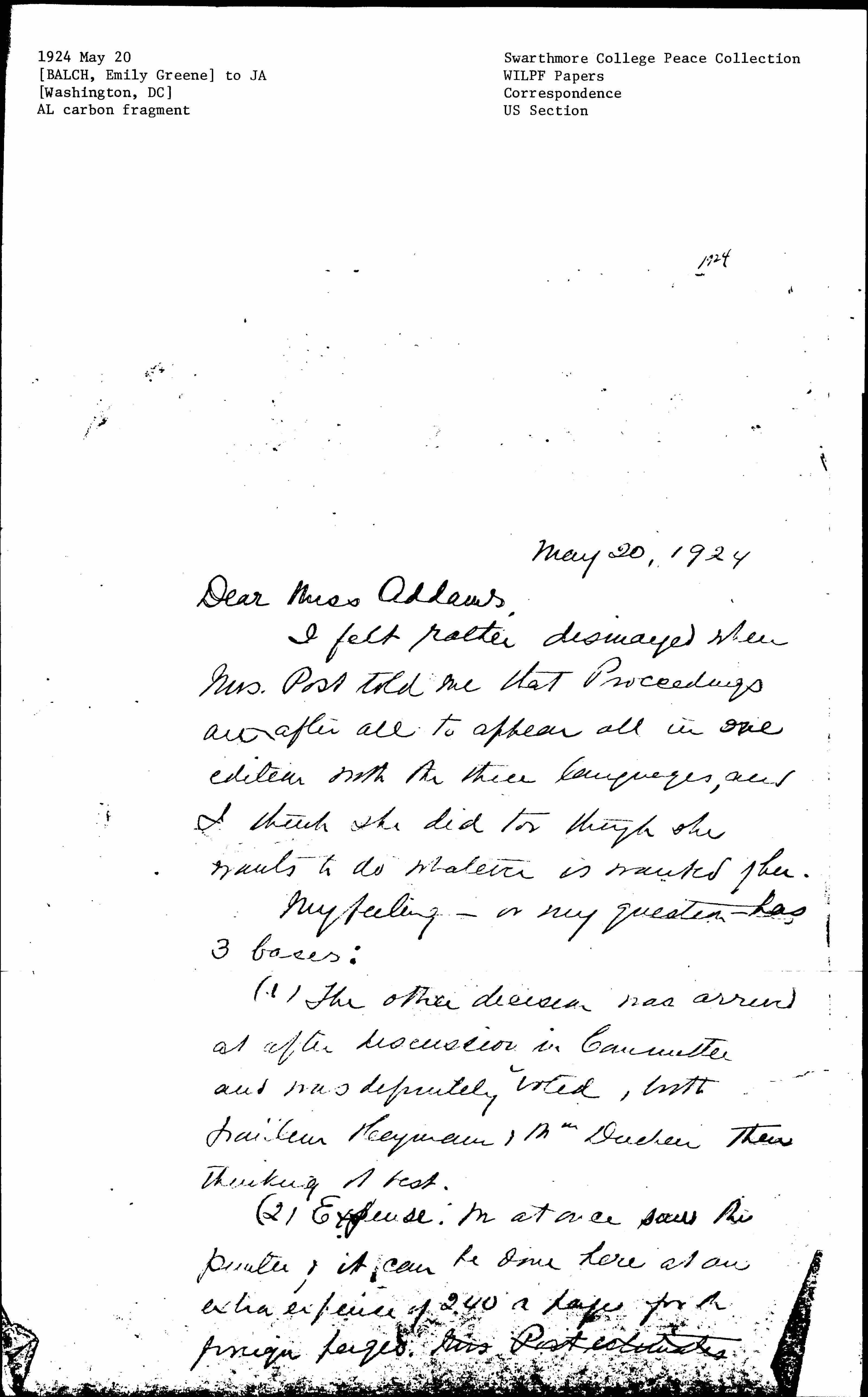 I felt rather dismayed when Mrs. Post told me that Proceedings are after all to appear all in one edition with the three languages, and I think she did too though she wants to do whatever is wanted of her.
