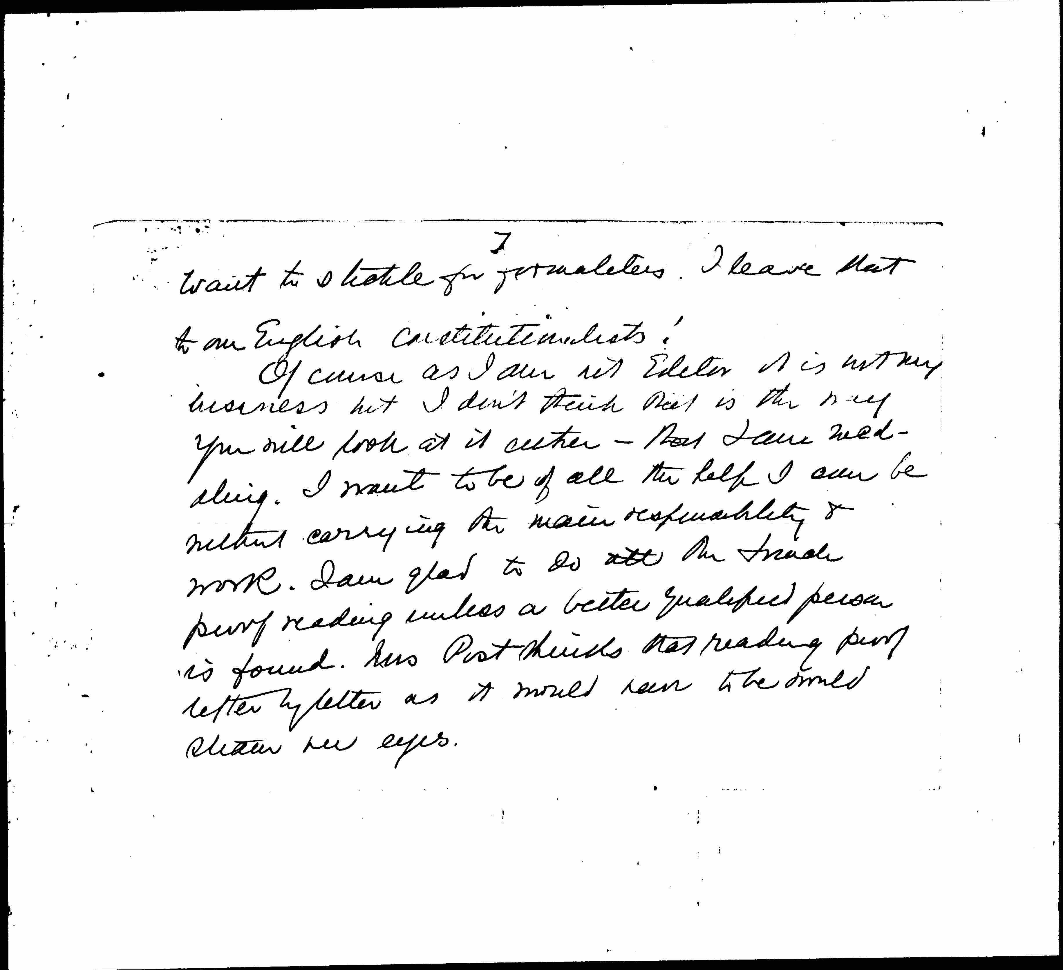 I honestly don't even think I know what is best on its merits. And as to the propriety of altering a Committee vote you and Fraülein [Heymann], each of you, have far better judgment then I. I certainly don't [illegible] I have [that?] [page 7] want to stickle for formalities. I leave that to our English constitutionalists!