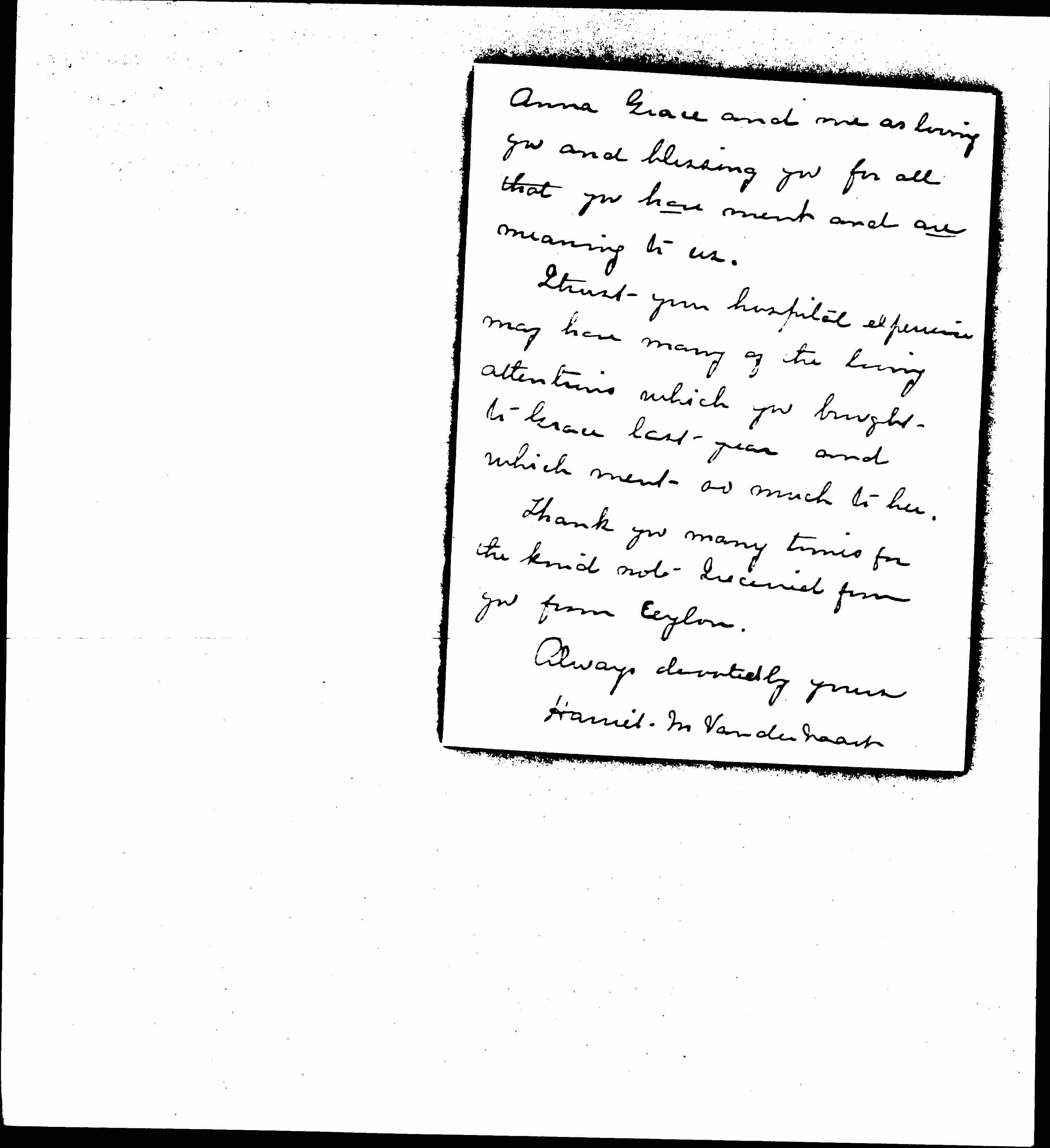 Thank you many times for the kind note I received from you from Ceylon.